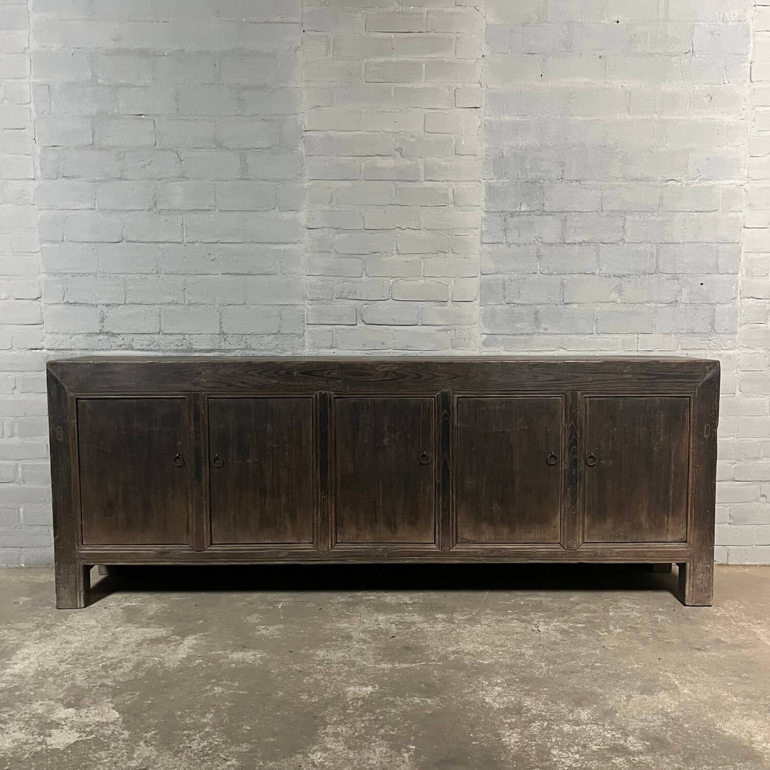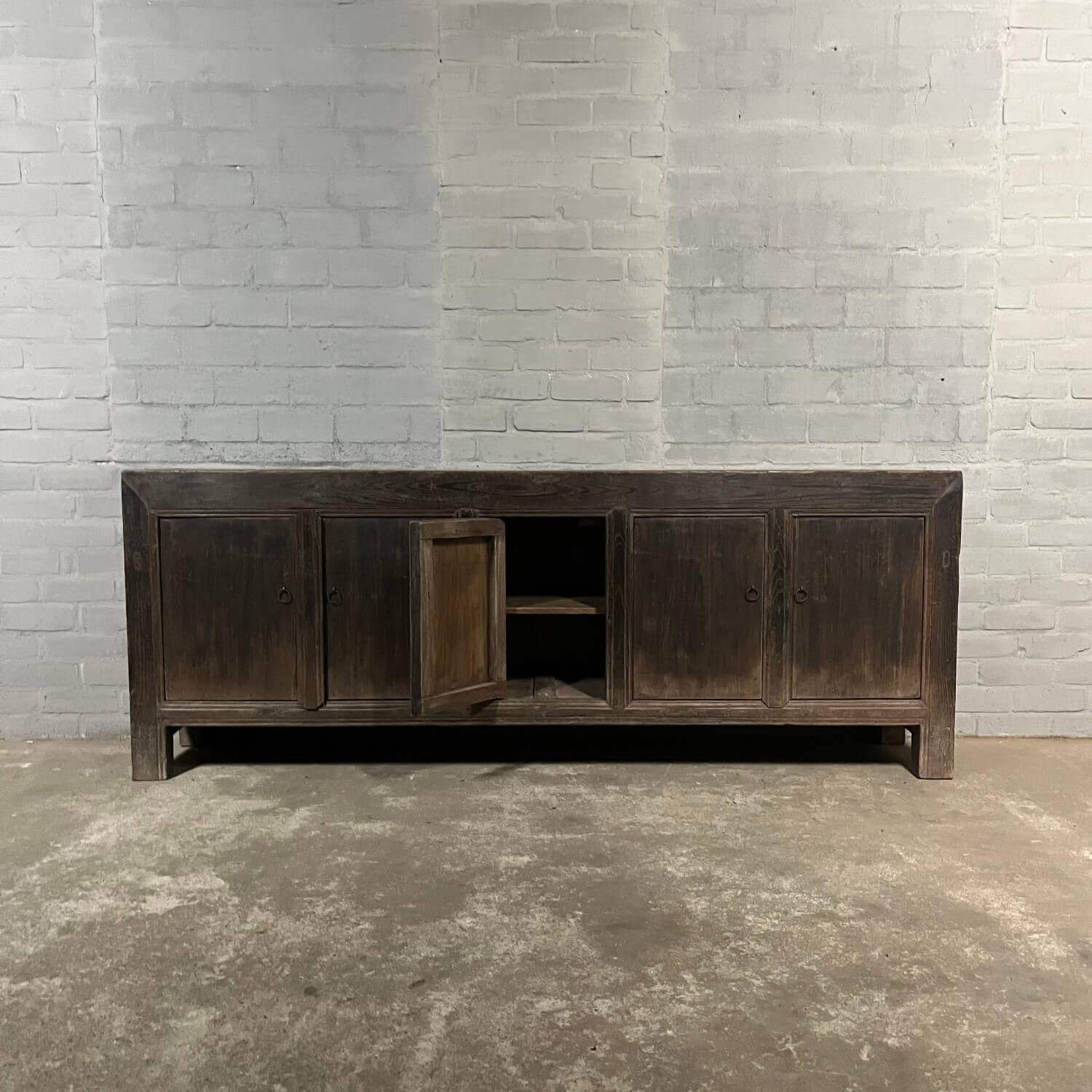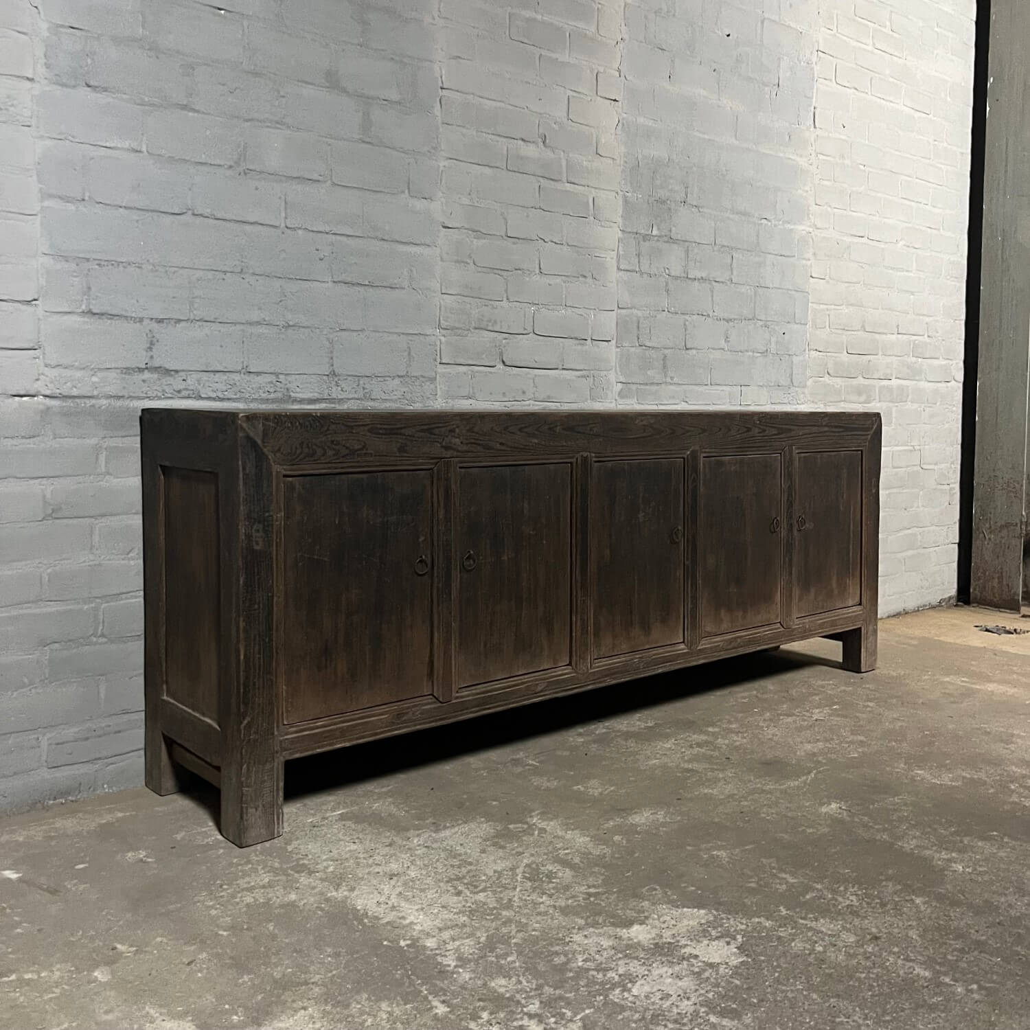 Altes Kommode mit 5 Türen aus China. Das Ulmenholz hat eine schwarze Patina.