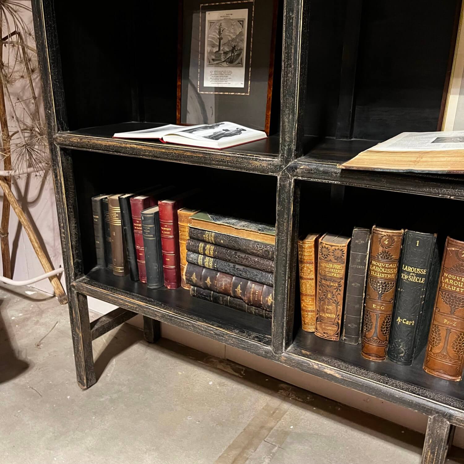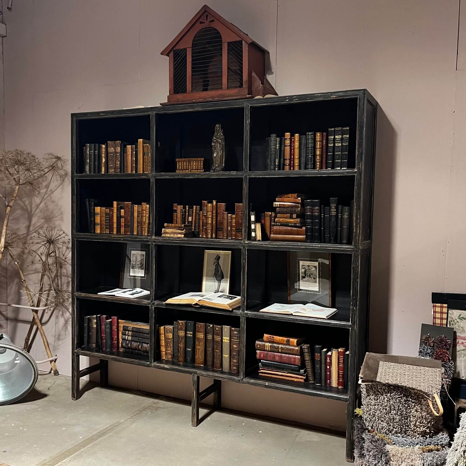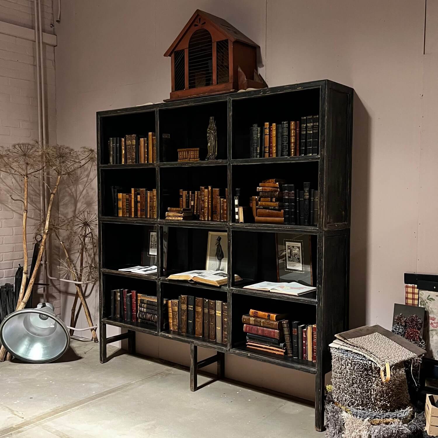 Großer alter chinesischer Wandschrank aus Ulme. Dieser Wandschrank verfügt über 12 gleiche Einlegeböden für die Präsentation von Gegenständen. Das Ulmenholz ist mit einer schwarzen Patina überzogen.