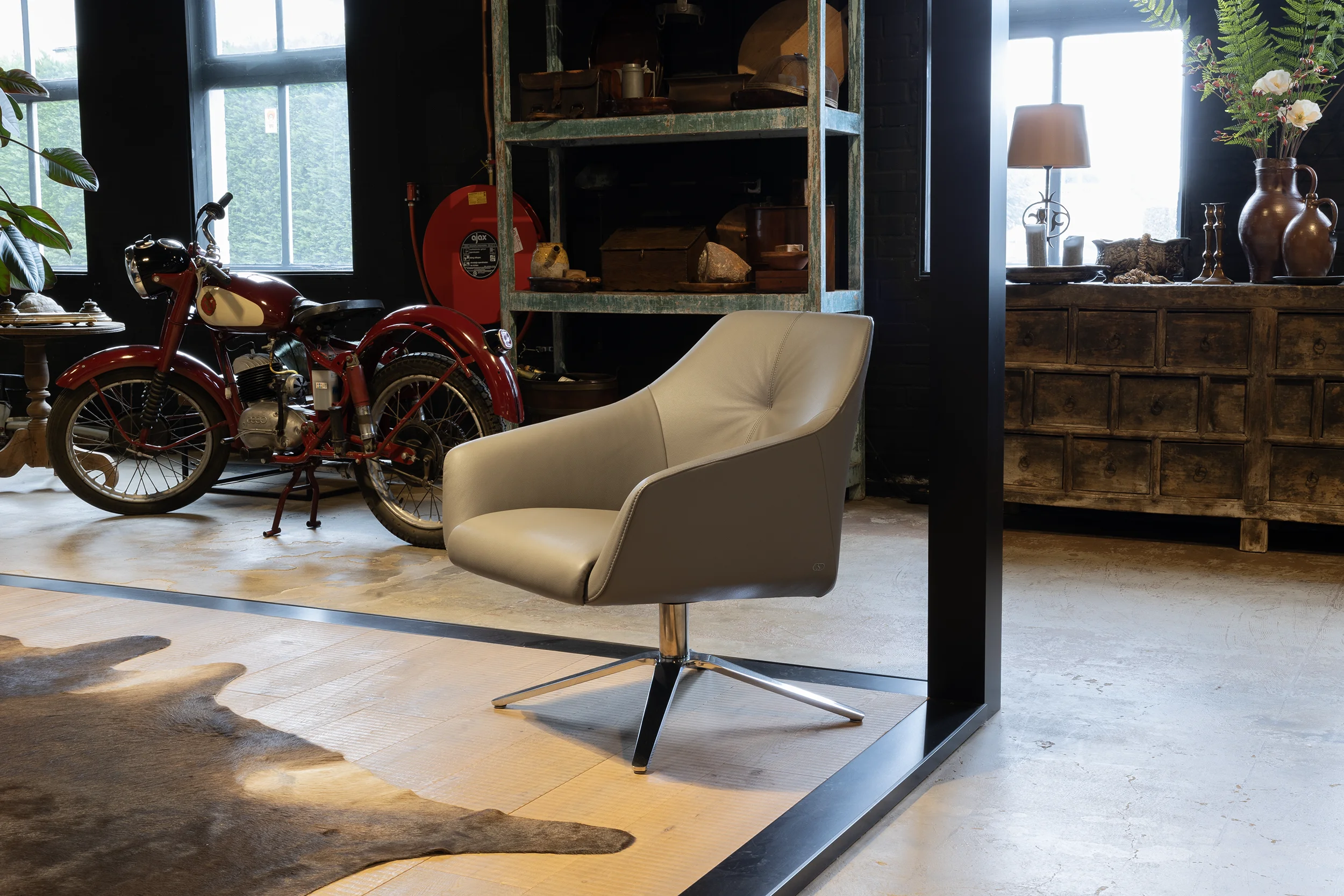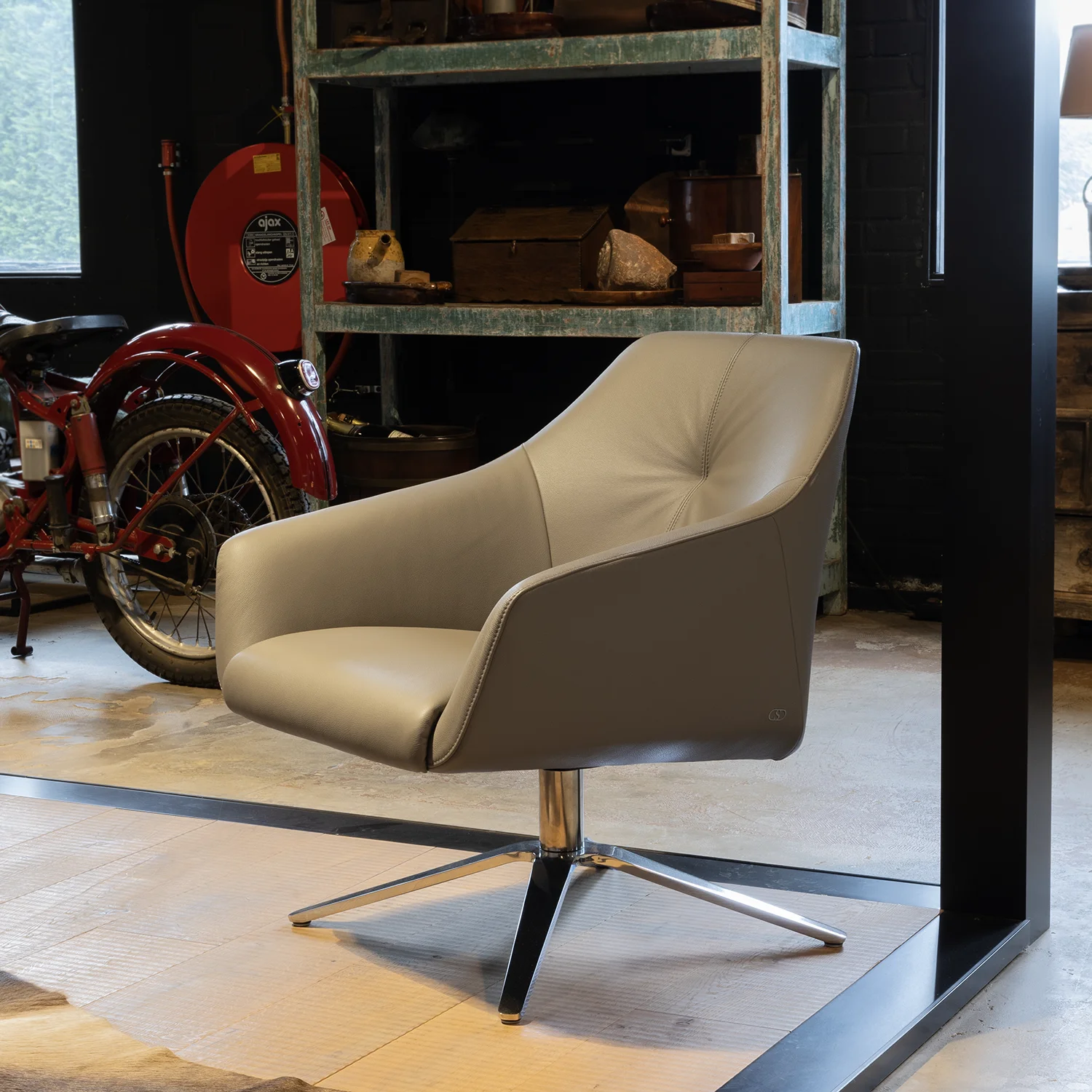 Eleganter Drehstuhl von de Sede, verarbeitet in Leder von außergewöhnlicher Qualität. Entwurf von Christian Werner.