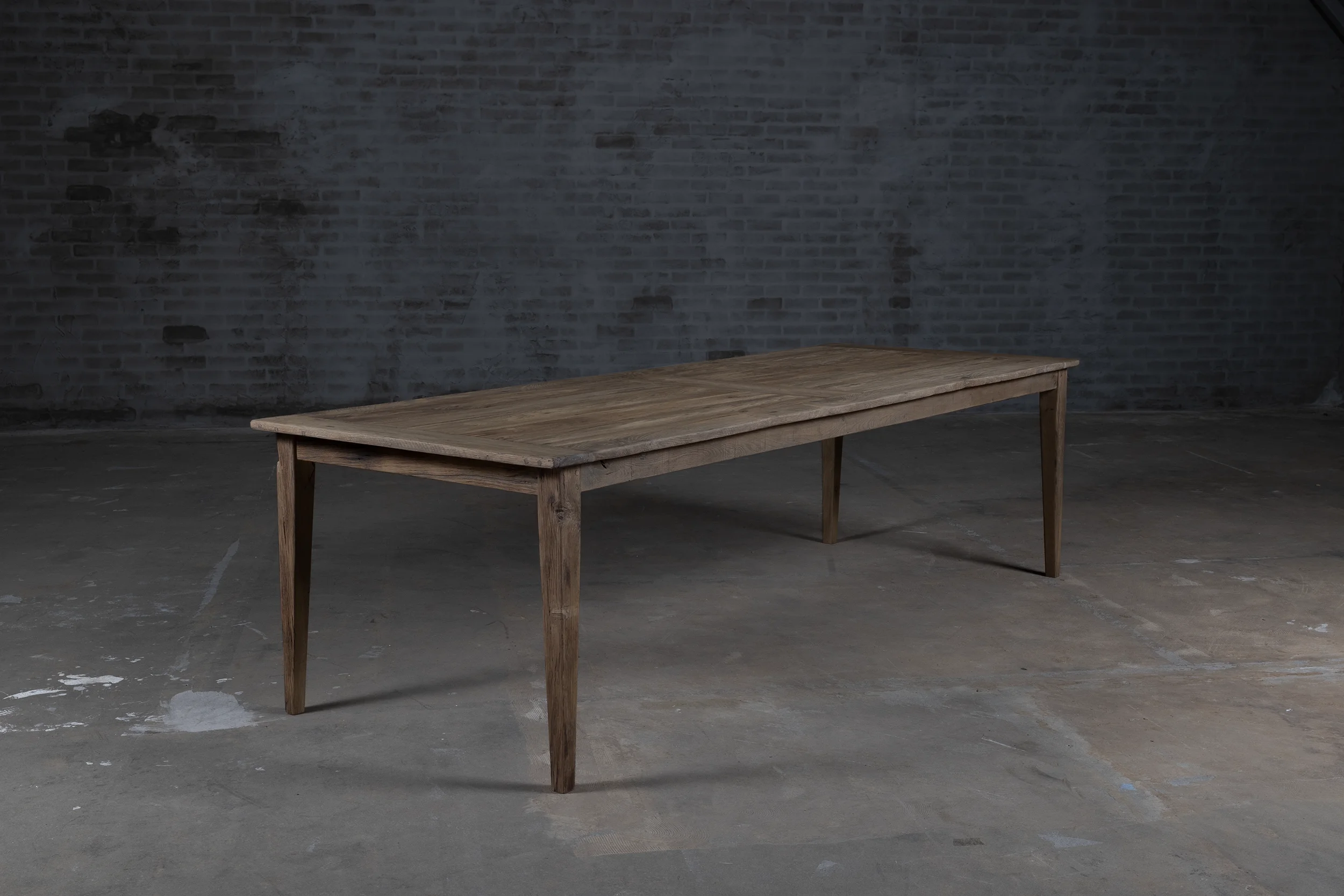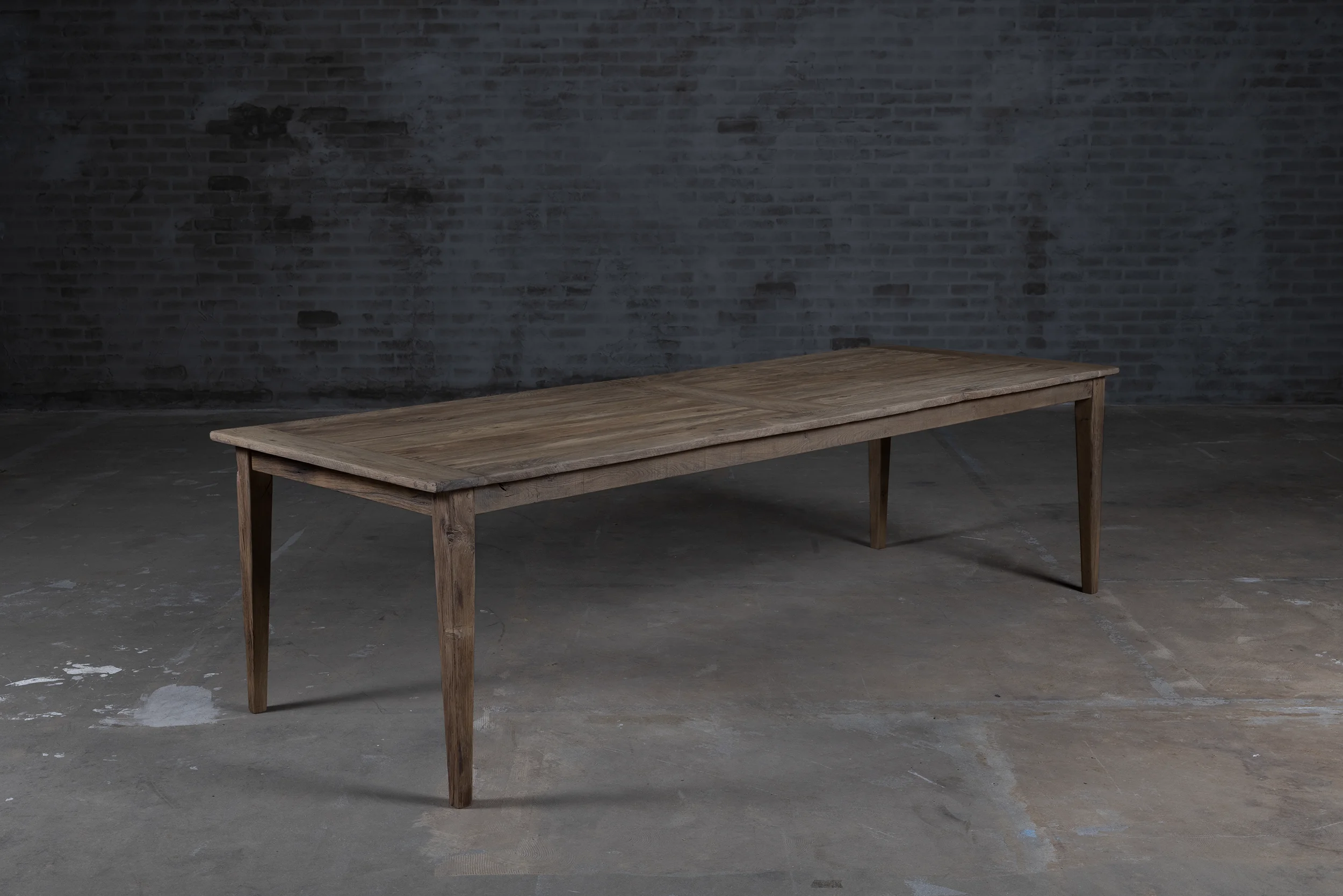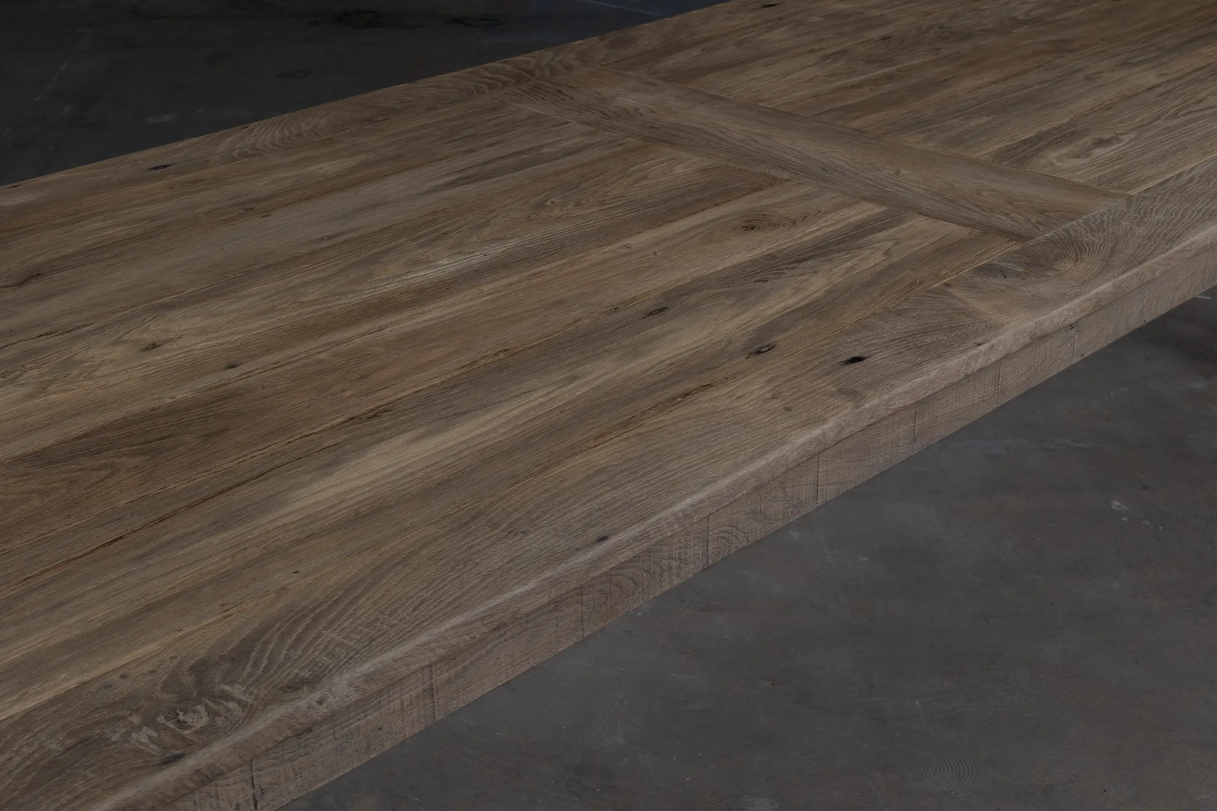 Dieser Eiche Bauerntisch ist in unserer Werkstatt nach dem Vorbild der authentischen Esstische hergestellt. Der Esstisch besteht aus sonnenverbrannter Eiche. Da dieses Holz seit Jahren in der Sonne als Fassadenverkleidung verfärbt ist, hat es eine wunderschönes Patina erhalten.