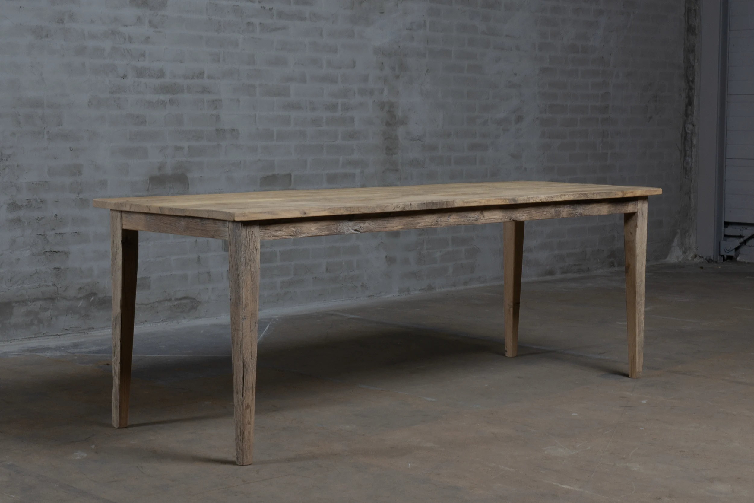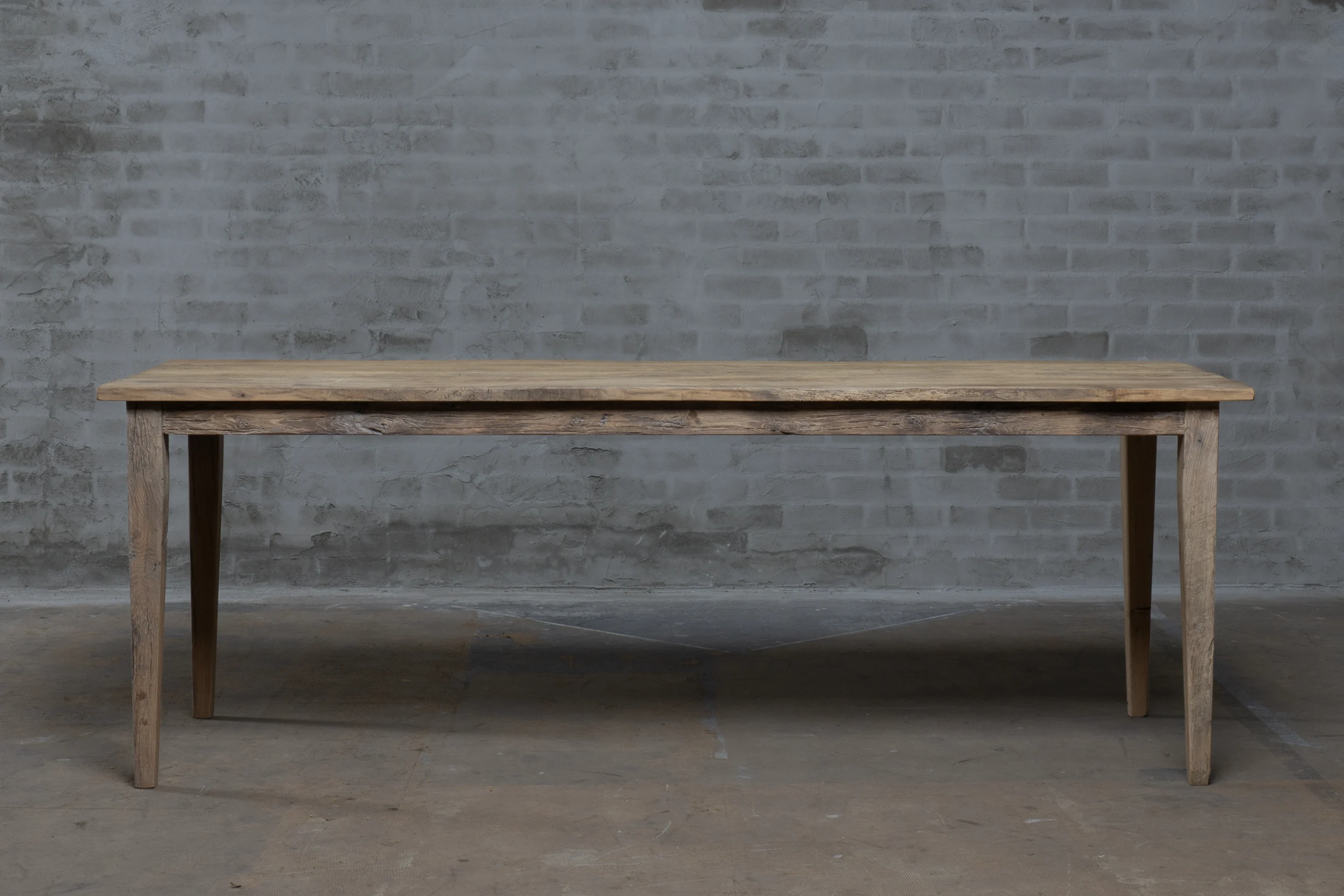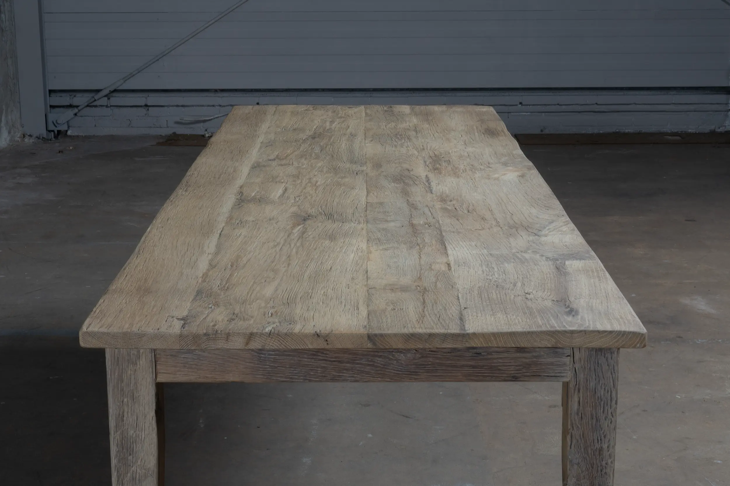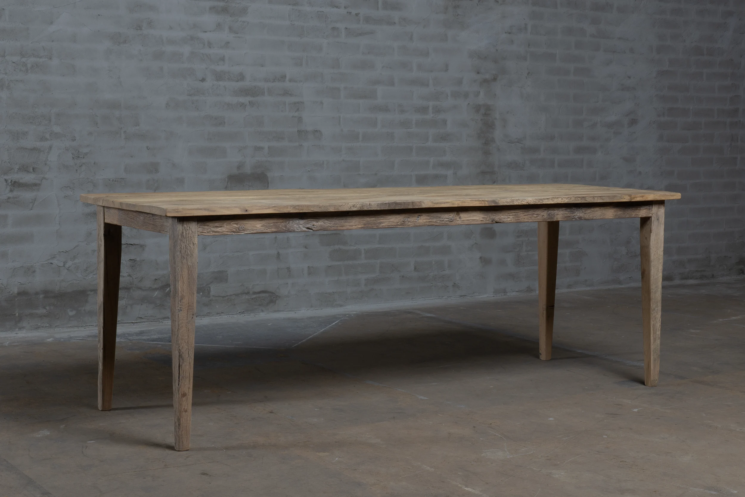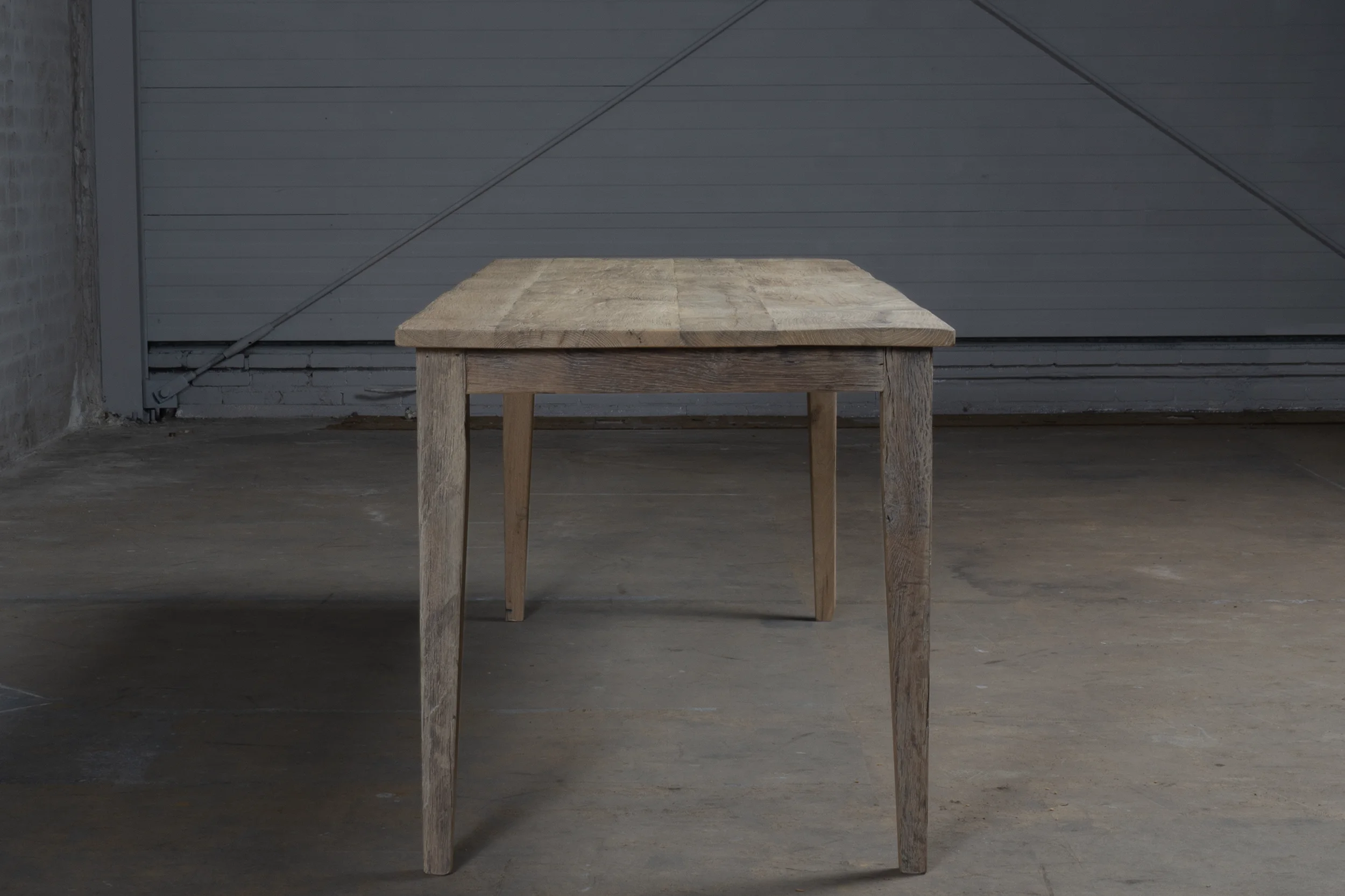 Dieser Eiche Bauerntisch wird in unserer Werkstatt nach dem Vorbild der authentischen französischen Bauerntische hergestellt. Der Tisch besteht aus rustikaler Alter Eiche. Da dieses Holz seit Jahren in der Sonne als Fassadenverkleidung verfärbt ist, hat es eine wunderschönes Patina erhalten.