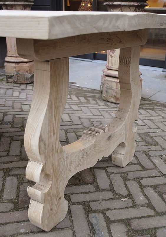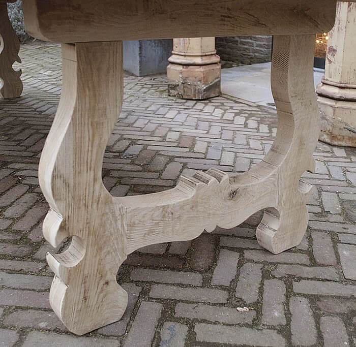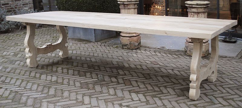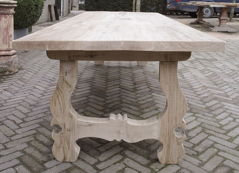Rustikaler Esstisch aus Eichenholz im Hacienda-Stil. Die Tischplatte besteht aus mindestens 6 massiven Eichenbrettern mit einer Dicke von ca. 4,5 cm.