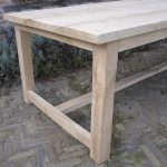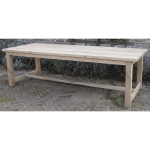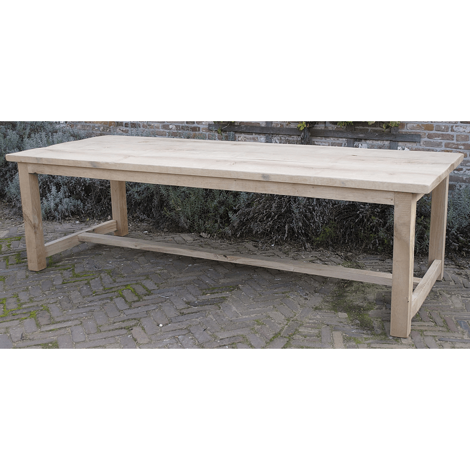Dieser Tisch wurde von uns entworfen und wird von Hand in unserer eigenen Werkstatt hergestellt. Der Tisch wird in der Farbe Ihrer Wahl, einschließlich der Standardfarben auf der rechten Seite, speziell für Sie angefertigt. Dies zeigt sich an den Querträgern zwischen den Beinen und der robusten Tischplatte, die für antike Klostertische charakteristisch sind.