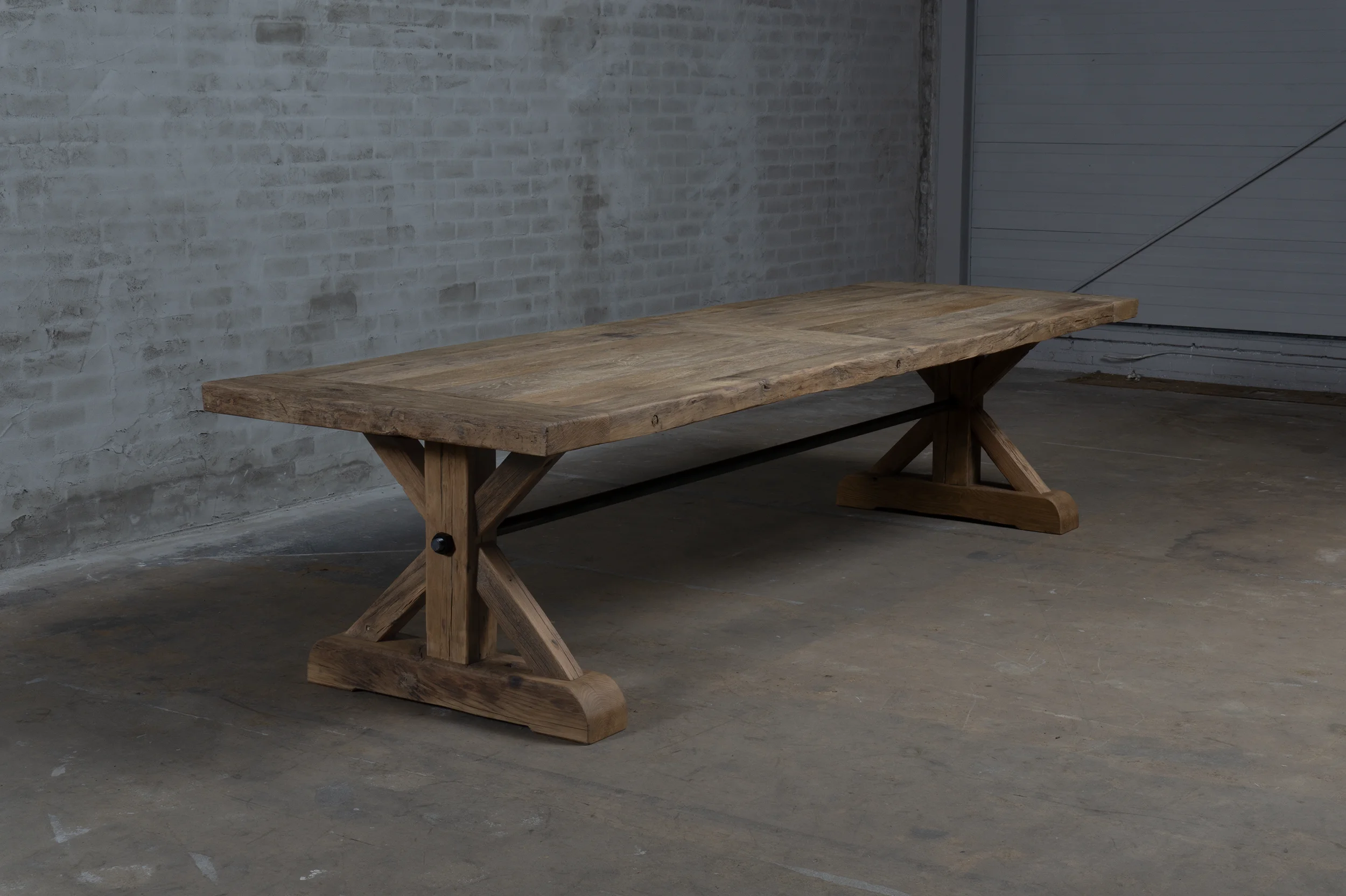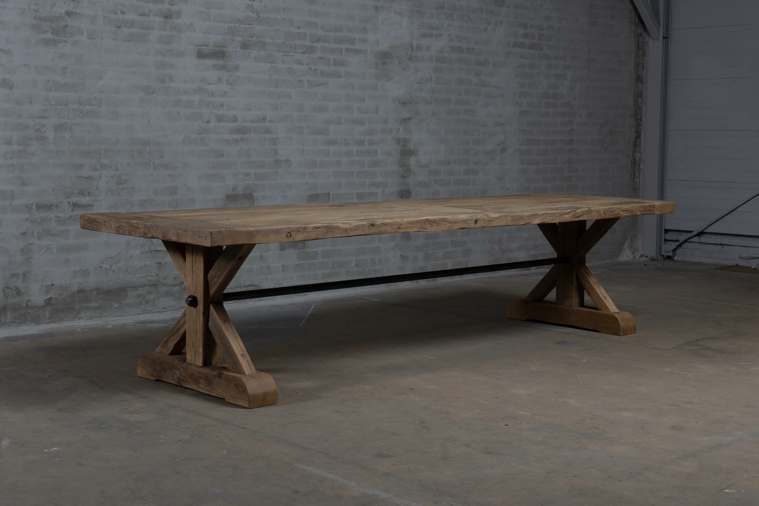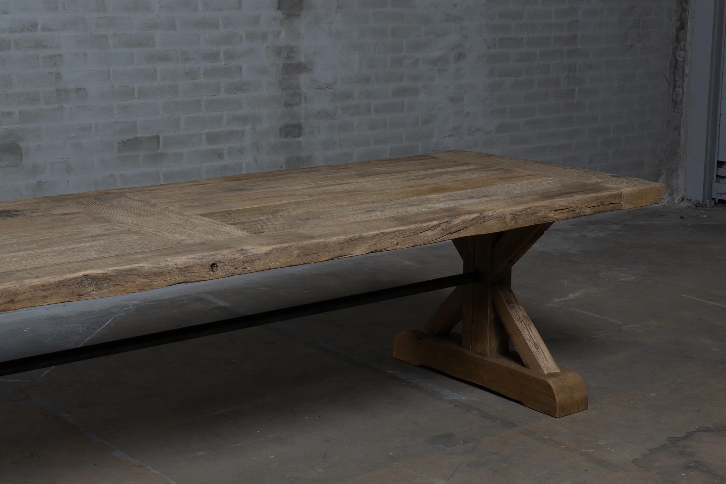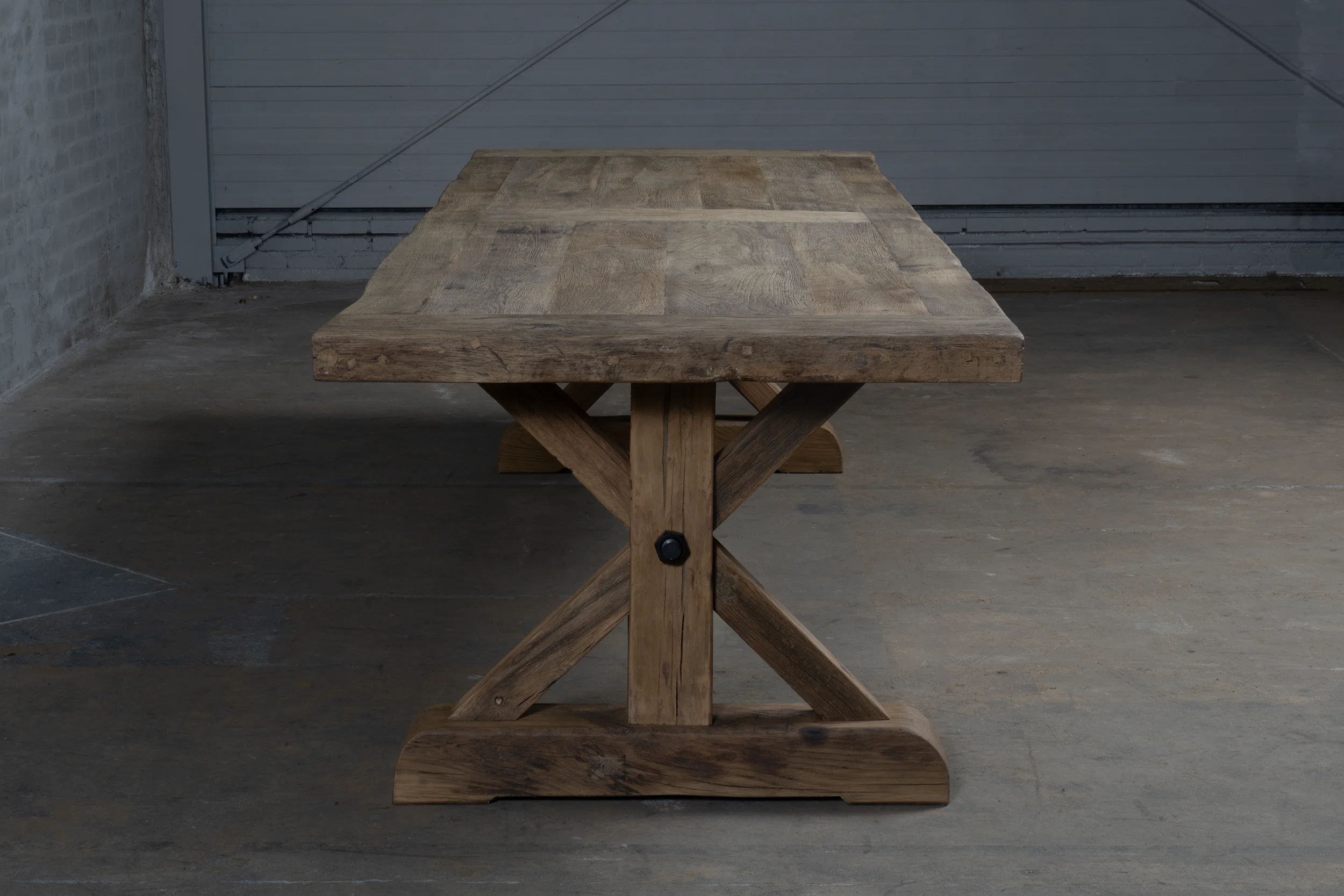 Dieser Altholz Eiche Klostertisch Model Grindelwald ist ein eigener Entwurf, ist in unserer Werkstatt hergestellt.