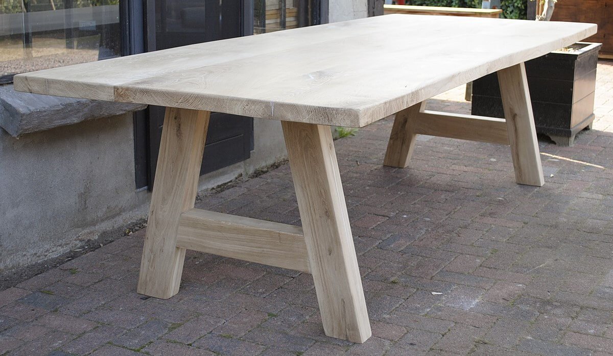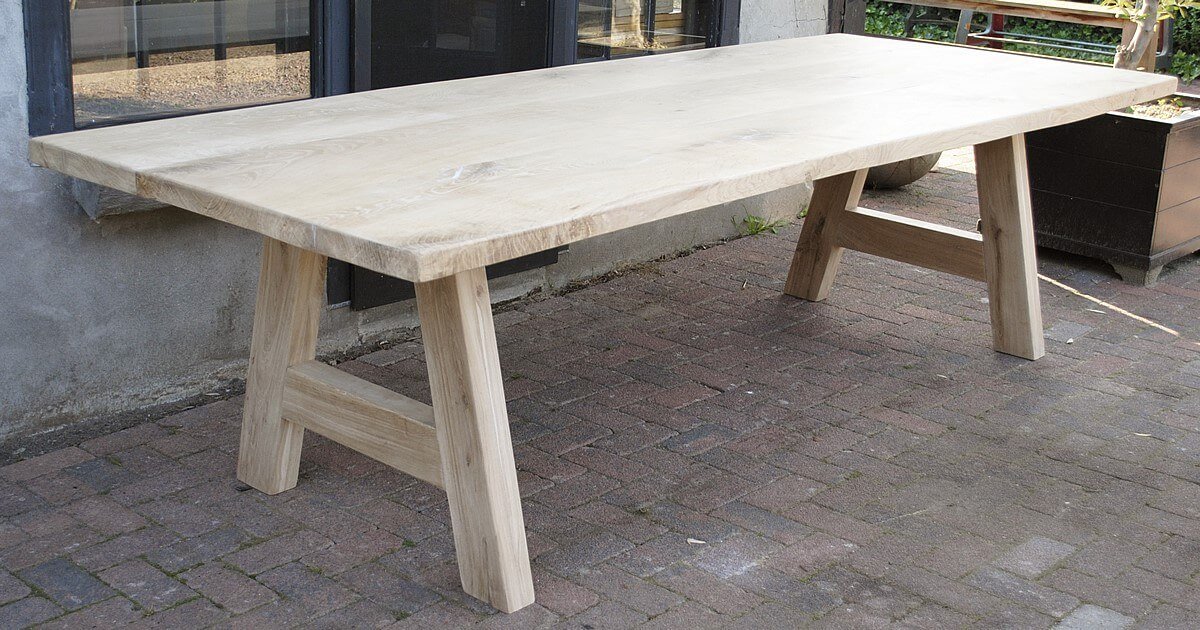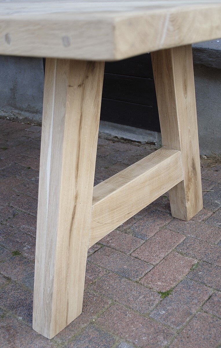 Rustikaler Esstisch aus Eichenholz nach Skandinavischer design. Die Tischplatte besteht aus mindestens 6 massiven Eichenbrettern mit einer Dicke von ca. 4,5 cm.