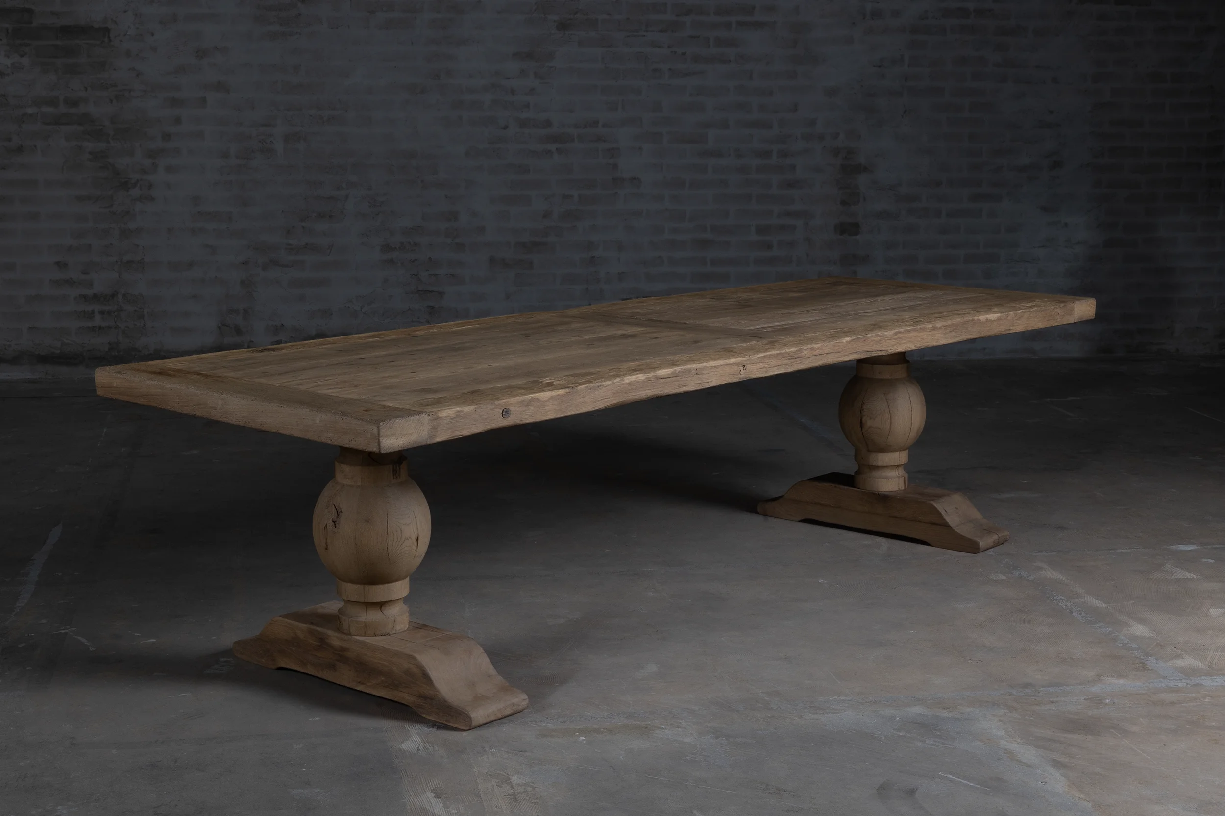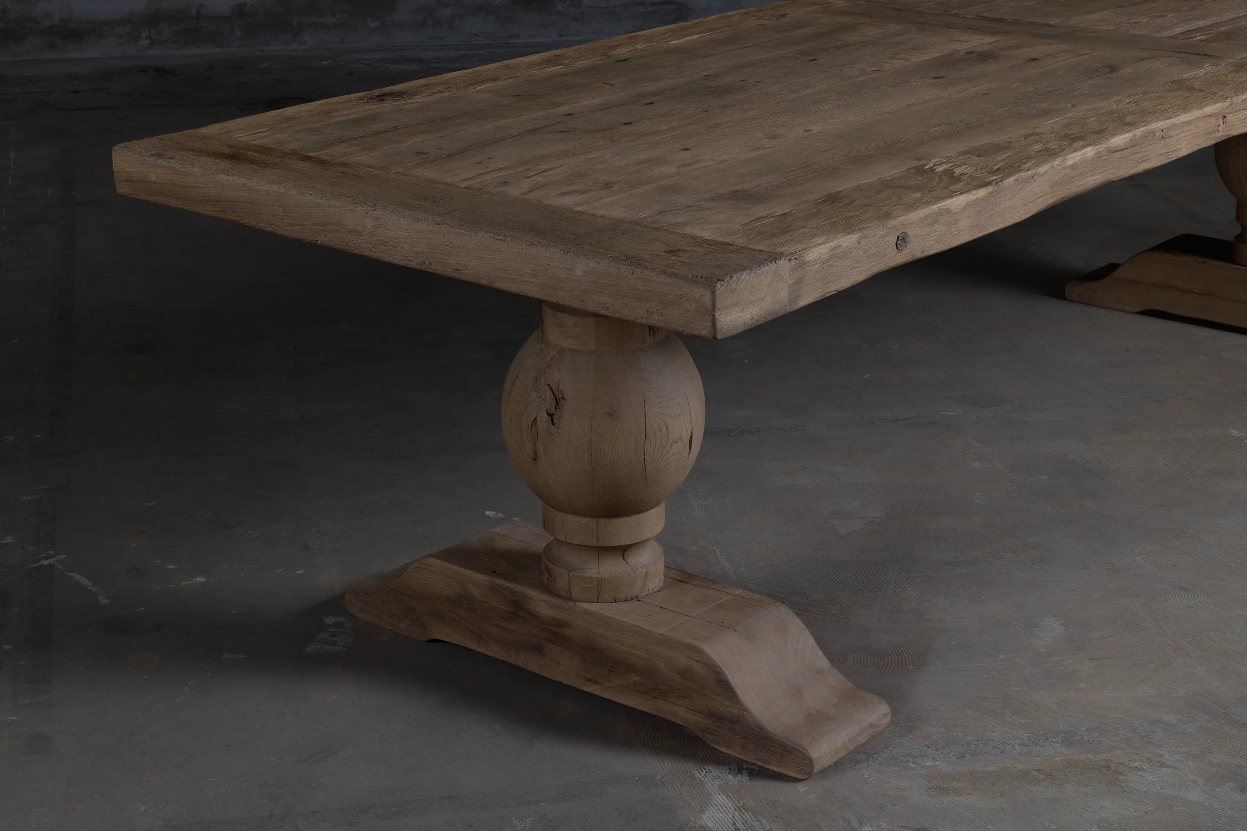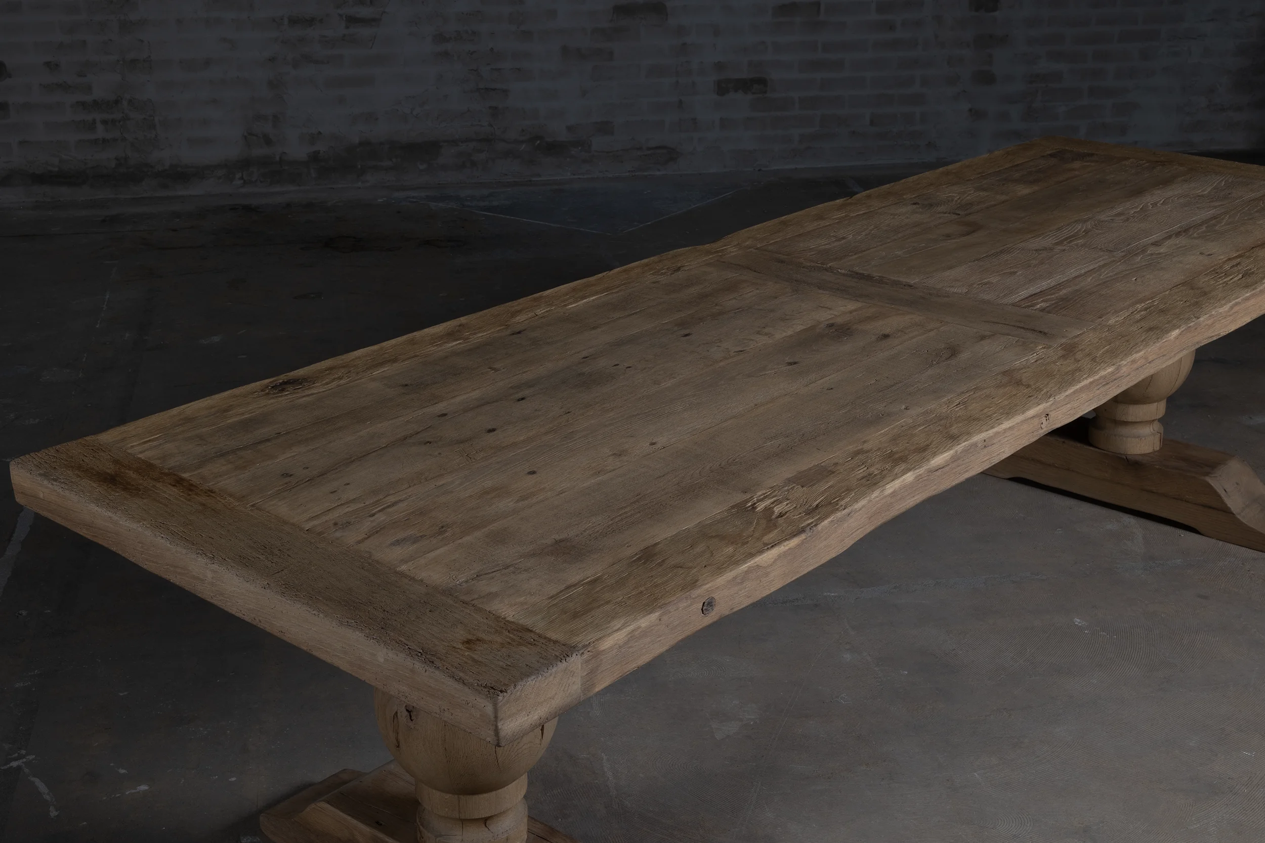 Um dem Tisch ein authentisches ländliches Aussehen zu verleihen, ist er aus altem Eichenholz gefertigt.