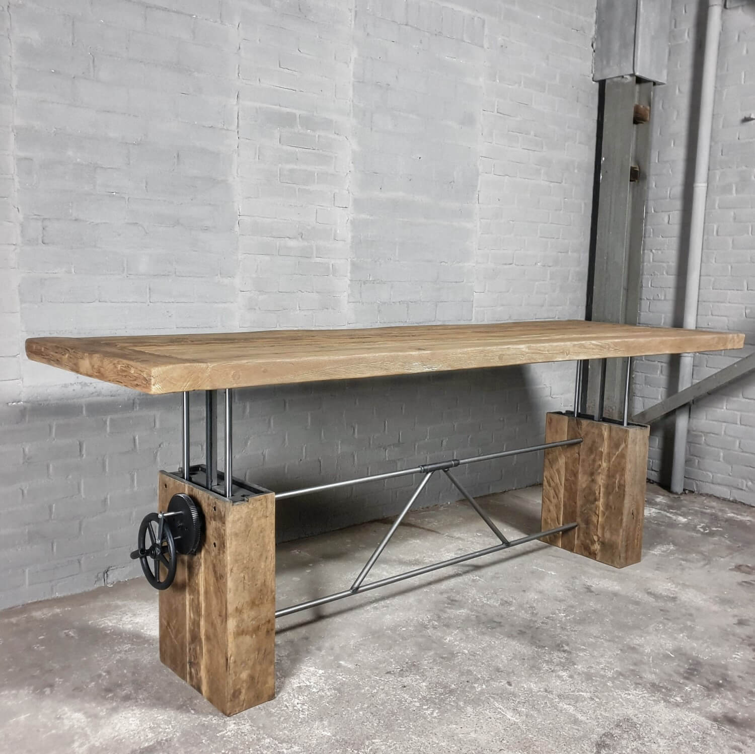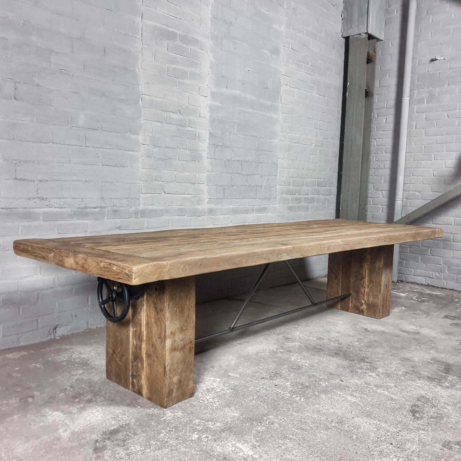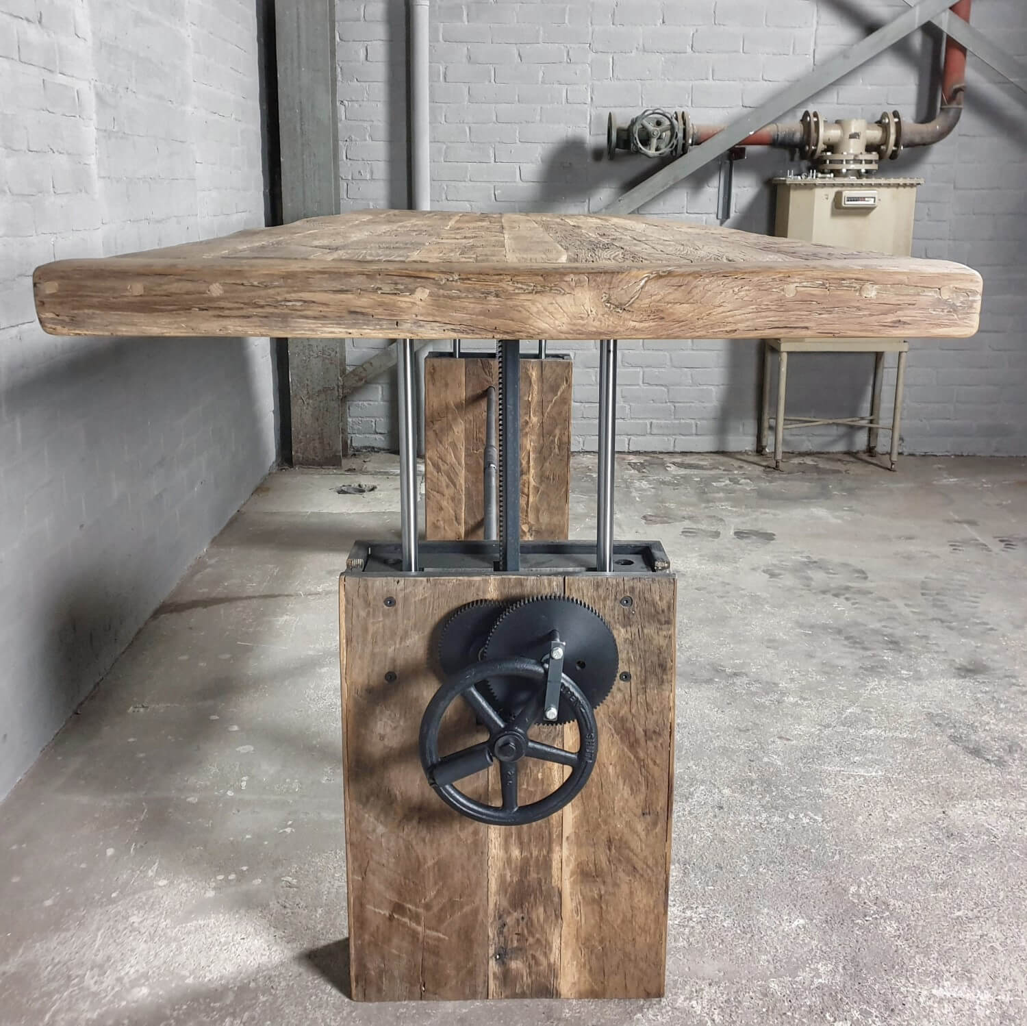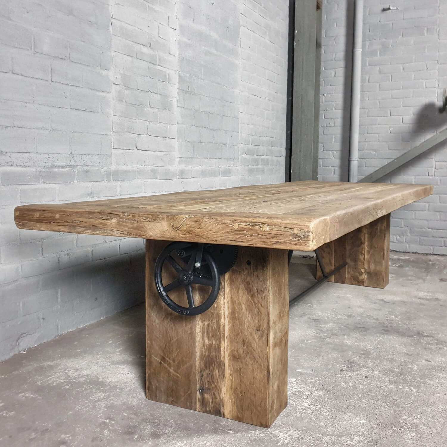 Die Tischplatte von 7cm dick und das Tischgestell sind verarbeitet aus dünnem sonnenverbrannten Altholz Eichen Brettern (gesägt aus die äußere Schicht alten Balken) die auf einer Möbelbauplatte geklebt sind. Die Außenkanten der Tischplatte sind aus massiven Brettern. Die sonnenverbrannten Bretter stammen aus alten Häusern, und haben eine wunderschöne Patina. Von der Sonne getönt!