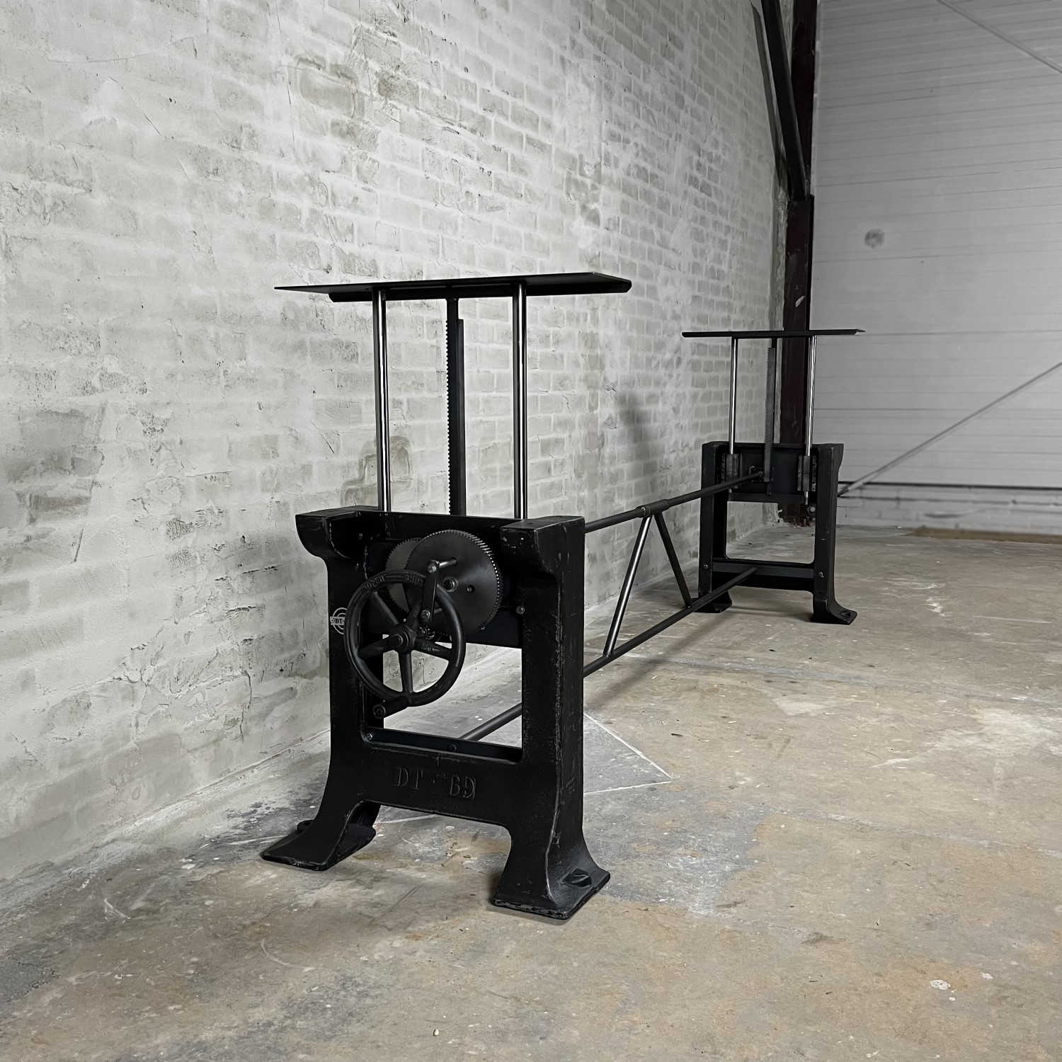 Diese industrie Design Tischgestell ist höhenverstellbar und wird in unserer Werkstatt handwerklich hergestellt. Verstellbar von 69cm bis 110cm hoch. Kann als Esstisch (niedrig) oder mit Barstühle (hoch) verwendet werden.