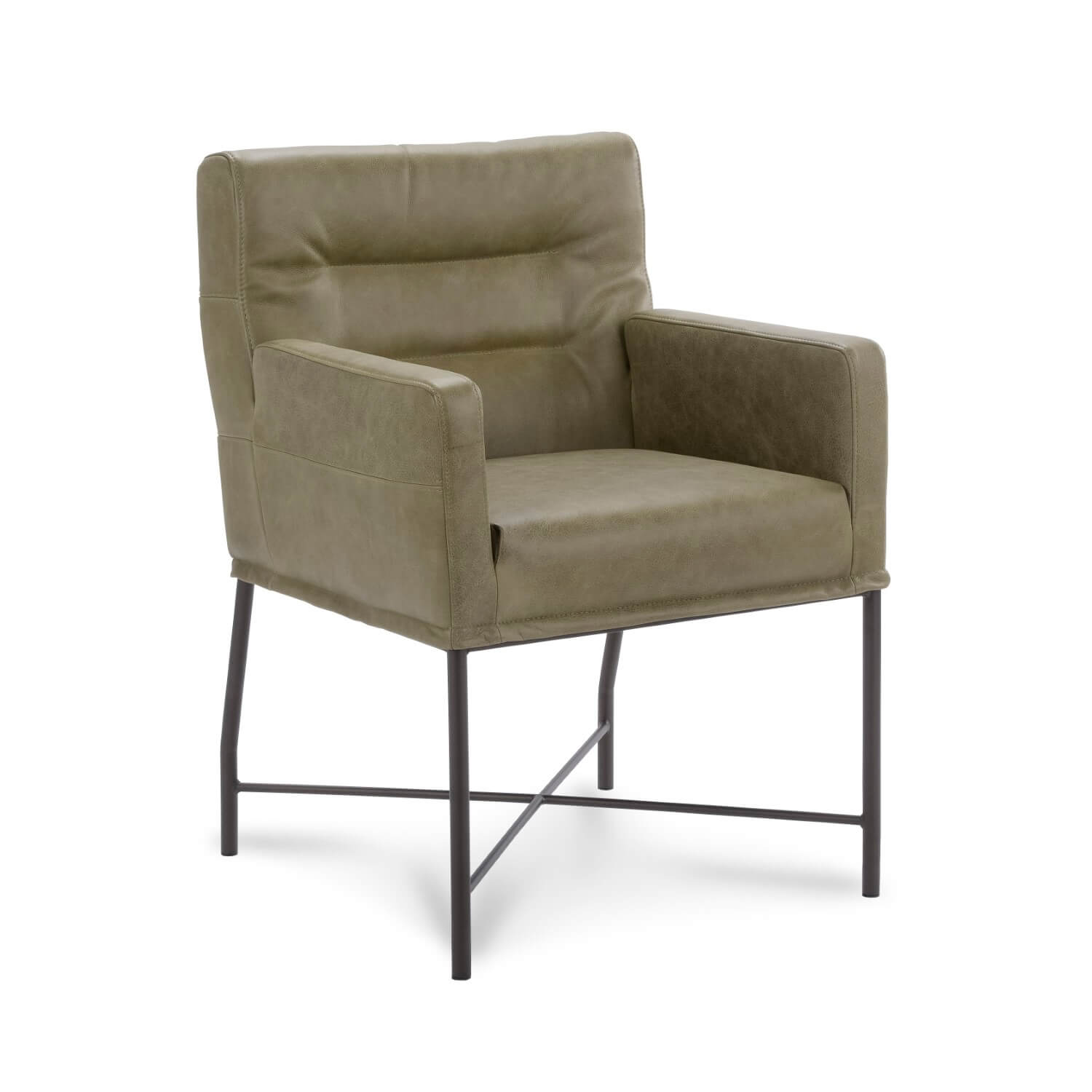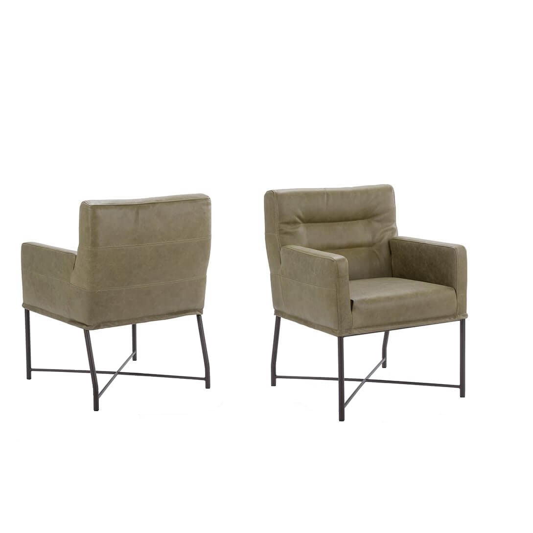 Deze industriële eetkamerstoel met armleuningen ‘Grasso’ zit uiterst comfortabel en heeft een stijlvol design. Hij is beschikbaar met stoffen en lederen bekledingen in veel verschillende kleuren. Vanwege zijn design is de Grasso goed te combineren met zowel landelijke als industriële eettafels.