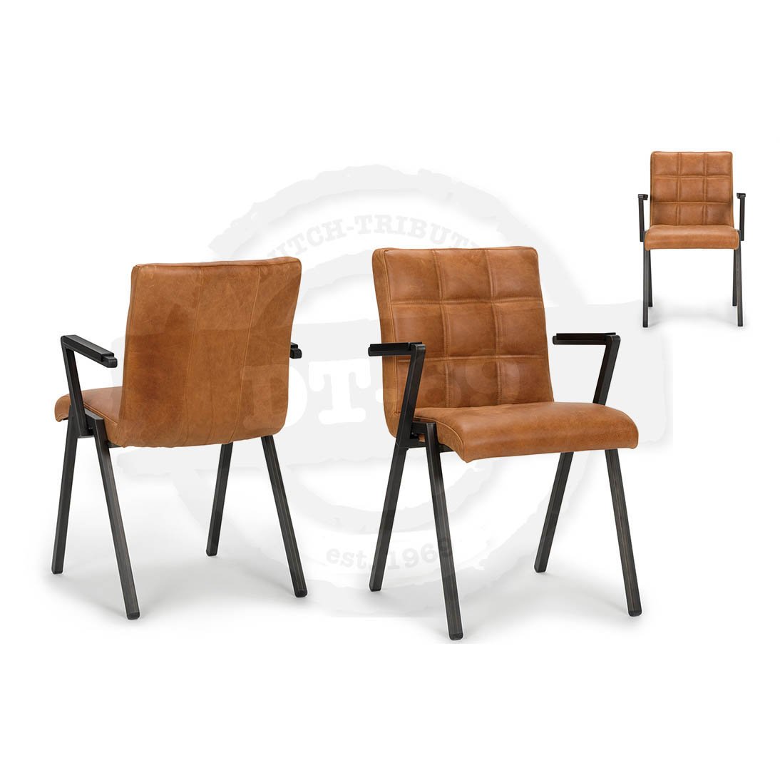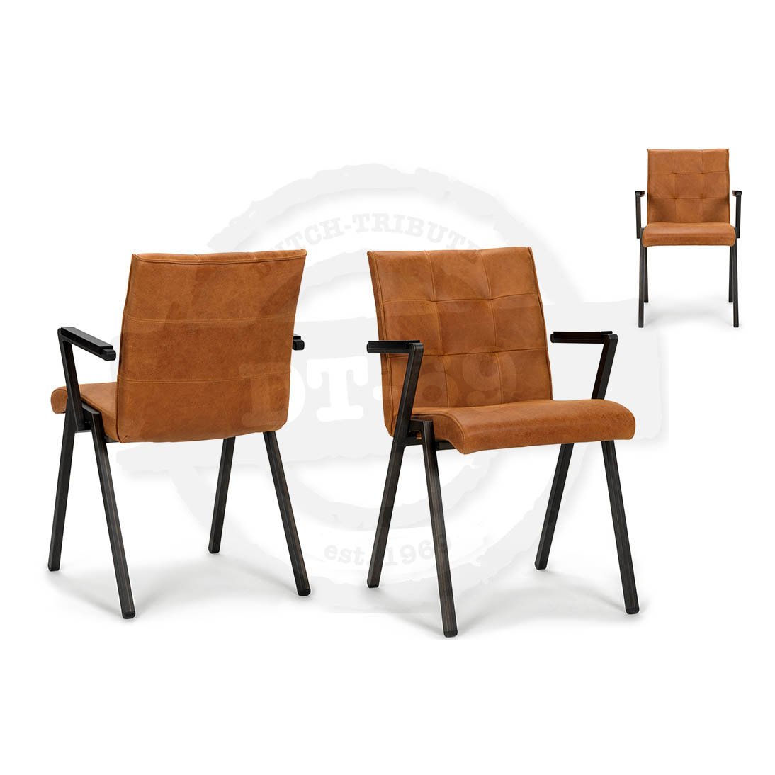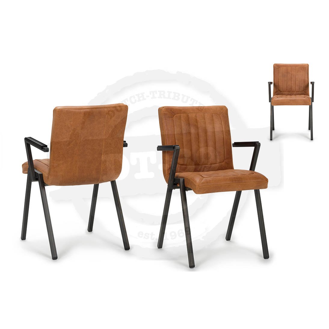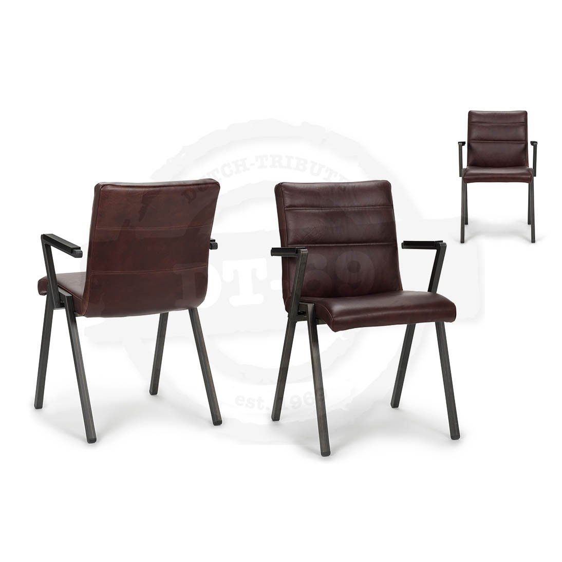 Diese Stühle sind auch mit Armlehne erhältlich, siehe die Seite ‘Industriedesign Leder Esszimmerstühle mit Armlehnen‘.
