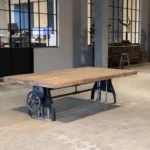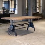 Dieser Industrial style Couchtisch ist höhenverstellbar und kann daher auch als Esstisch verwendet werden. Sie können ihn nach Maß bestellen.