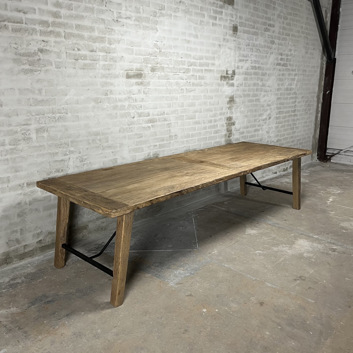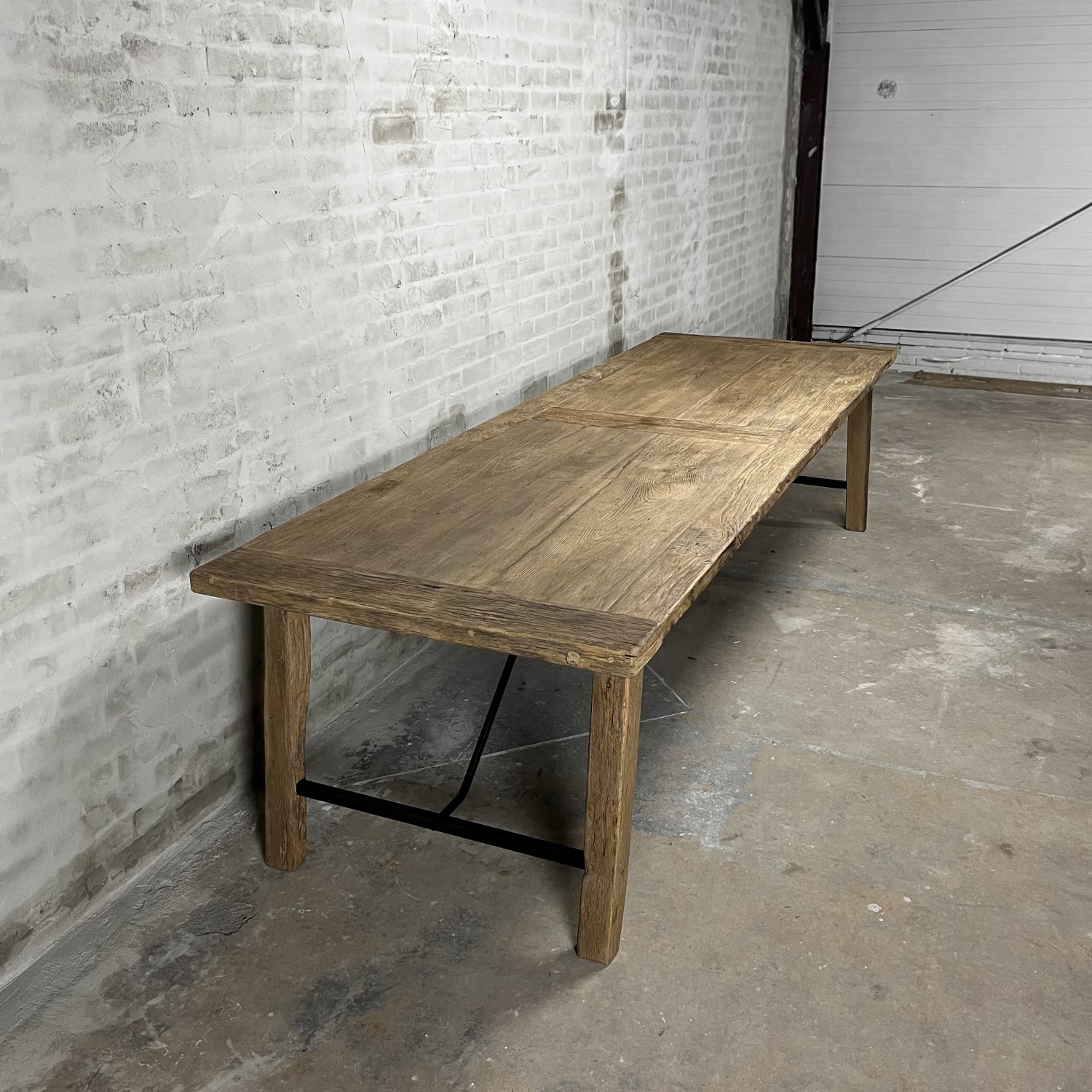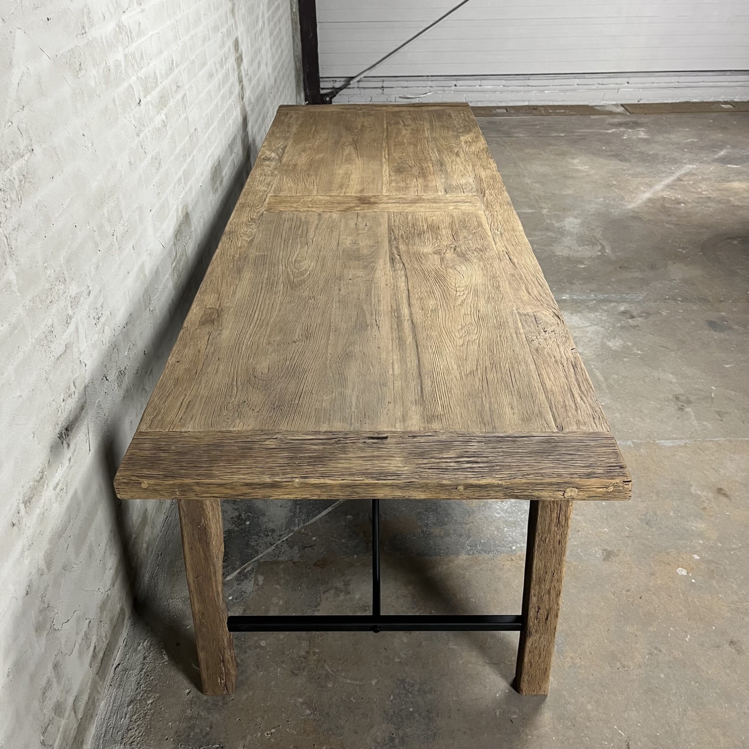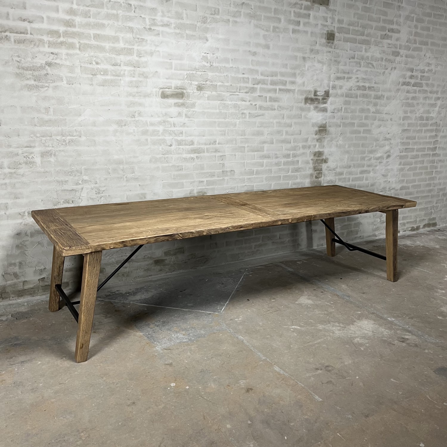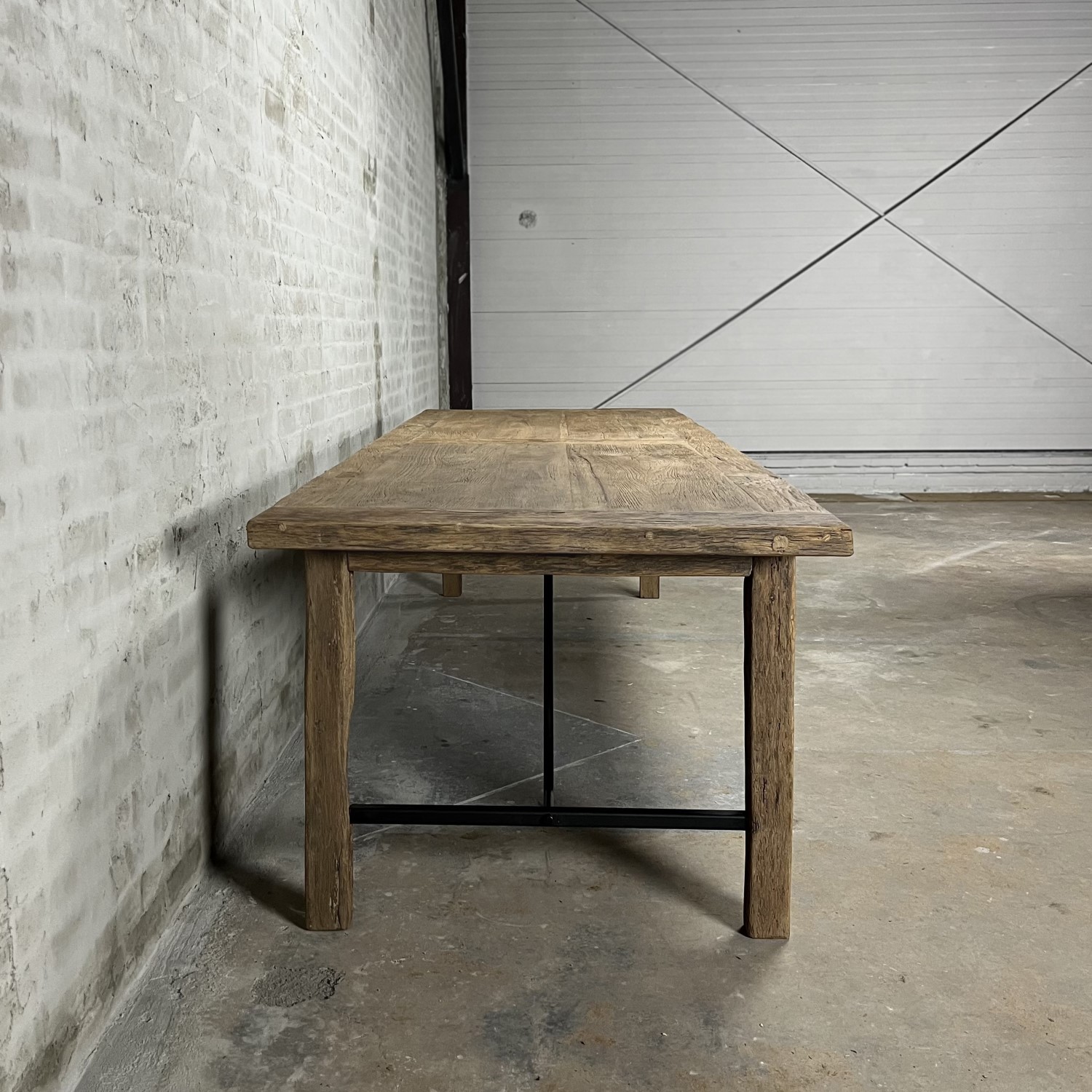 Esstisch landhausstil Bato ist ein eigener Entwurf und wird in unserer Werkstatt hergestellt aus Alter Eiche und Stahl. Bei diesem ländlich-industriellen Design haben wir uns entschieden, Stahlelemente in den Tisch zu integrieren. Dadurch passt er sowohl in ländliche als auch in industrielle Interieurs.