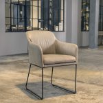 Der moderne Sessel Youma verfügt über luftige Sitzkissen und ein dünnes Stahlgestell. Der Stuhl selbst hat ein modernes Aussehen, aber die Form hat auch einen Hauch von den klassischen Esszimmerstühlen. Das bedeutet, dass dieser Esszimmerstuhl sowohl mit modernen als auch mit antiken Möbeln gut kombiniert werden kann.