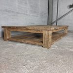 Dieser robuste Couchtisch Colmar hat ein zusätzliches unteres Regal und wurde von uns im Landhausstil entworfen, ist in eigene Werkstatt aus altholz Eiche hergestellt.