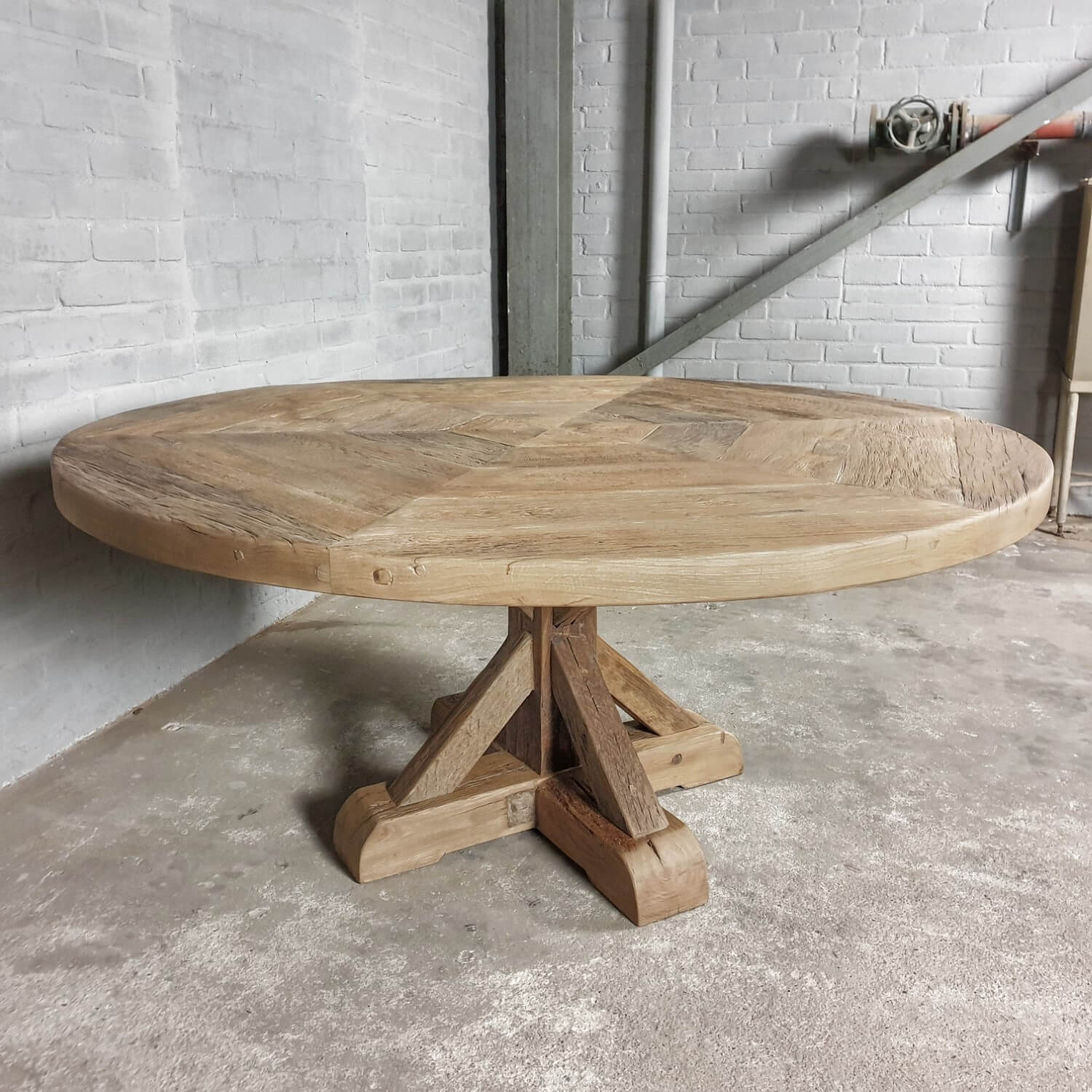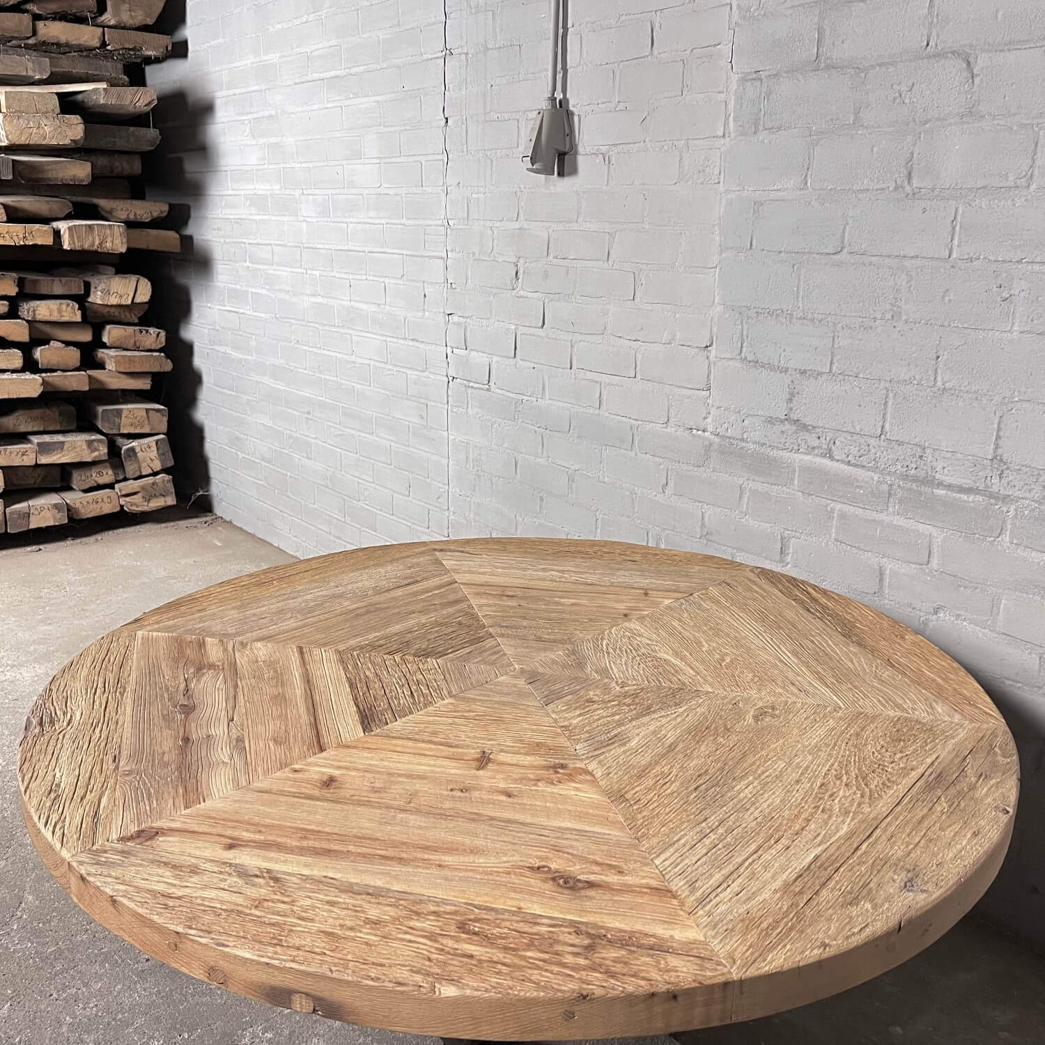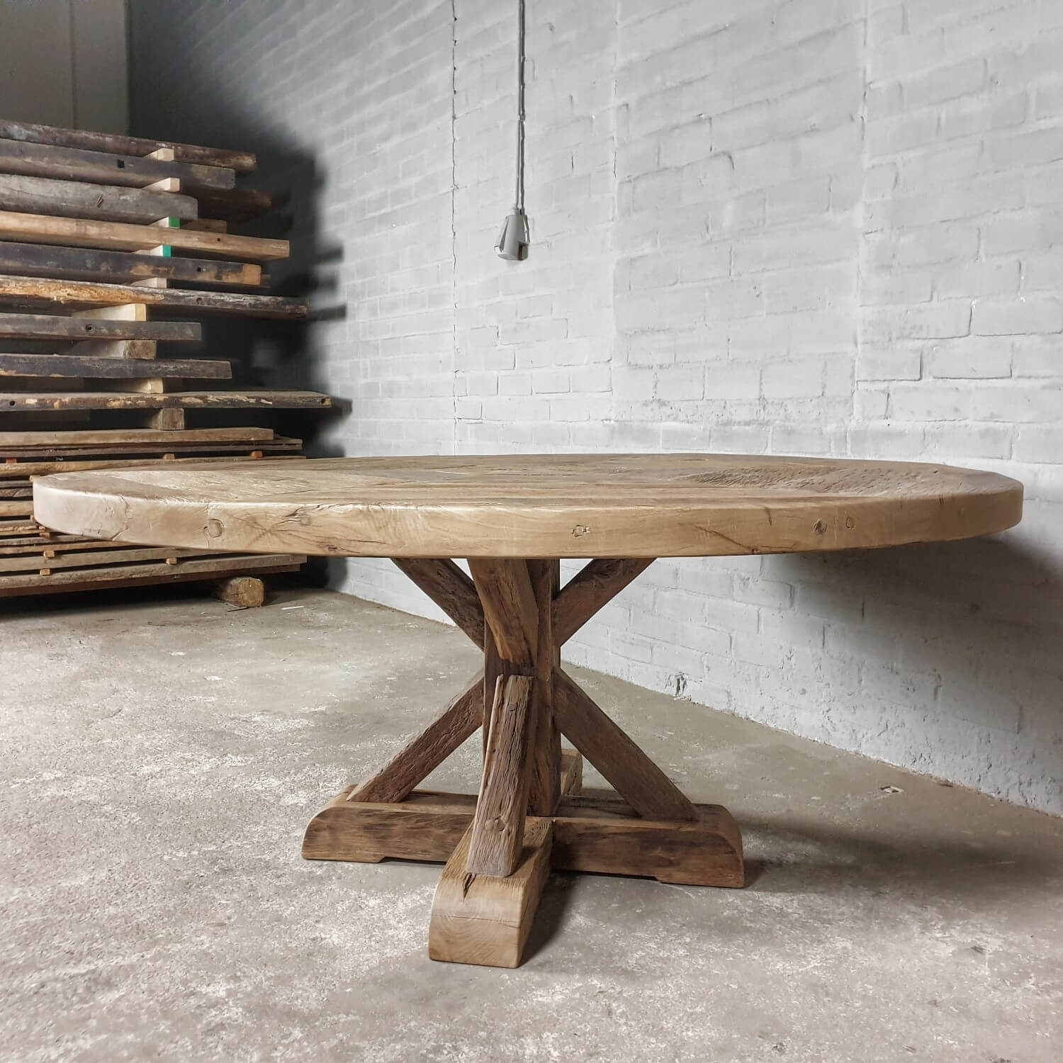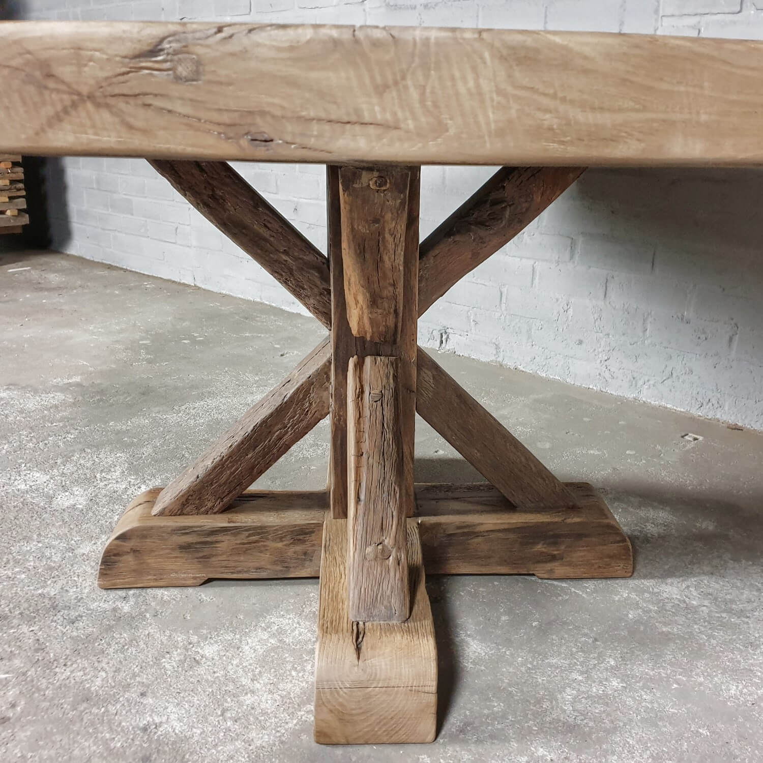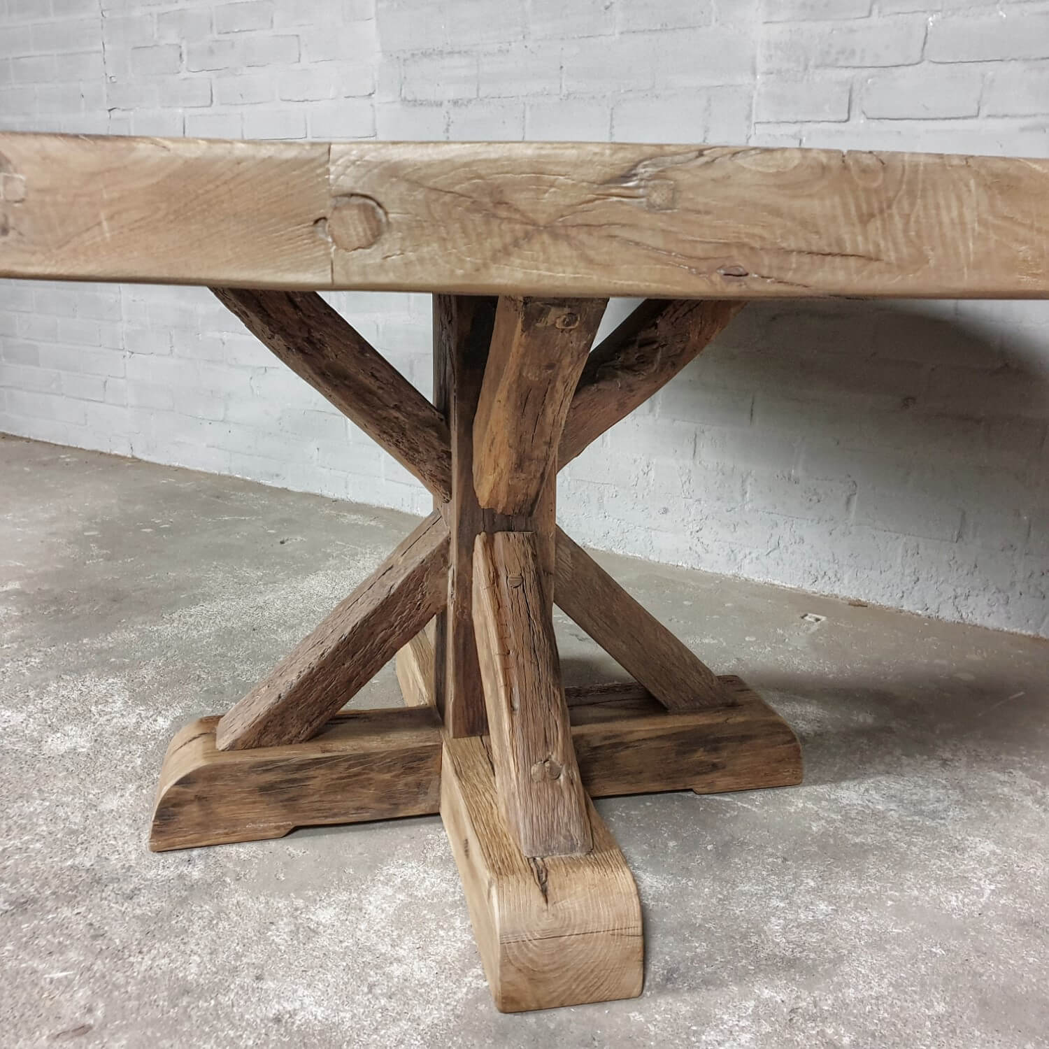 Dieser Altholz Eiche Klostertisch Typ Basel ist unserer eigener Entwurf und in unserer eigenen Werkstatt hergestellt.