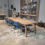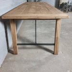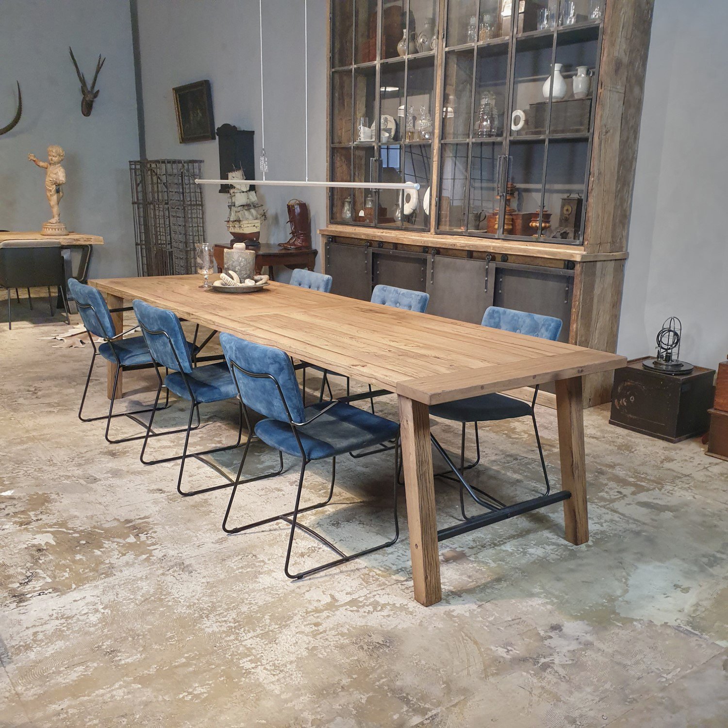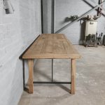 Esstisch Bato ist ein eigener Entwurf und wird in unserer Werkstatt hergestellt aus Altholz Eiche Altholz und Stahl.