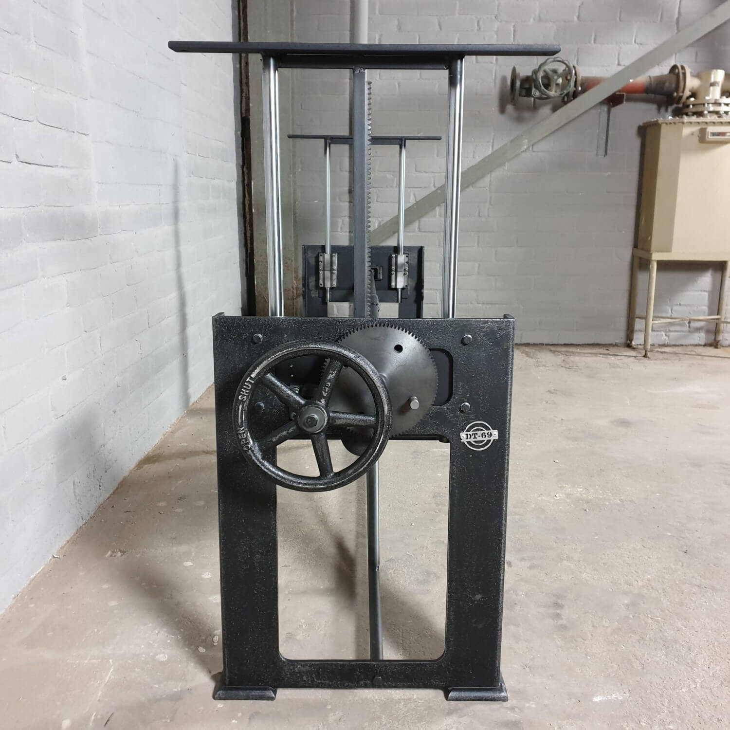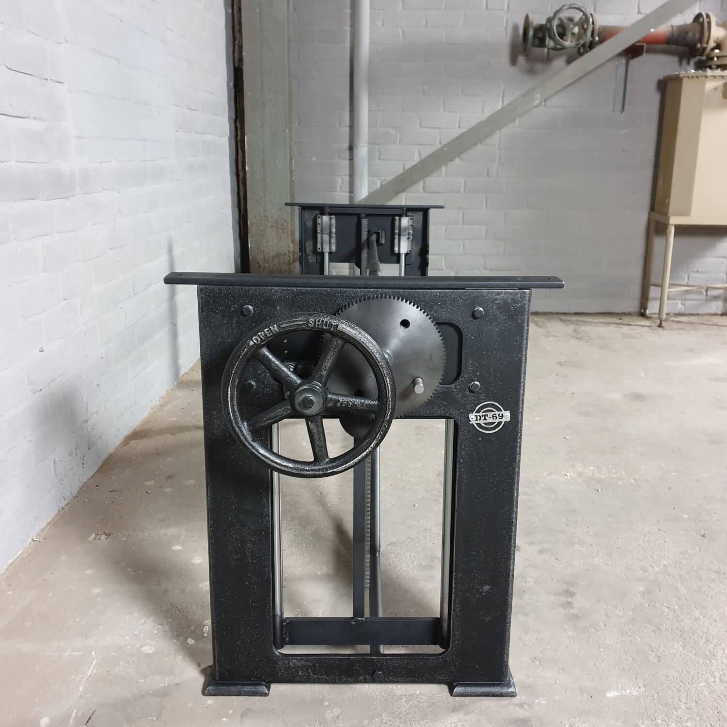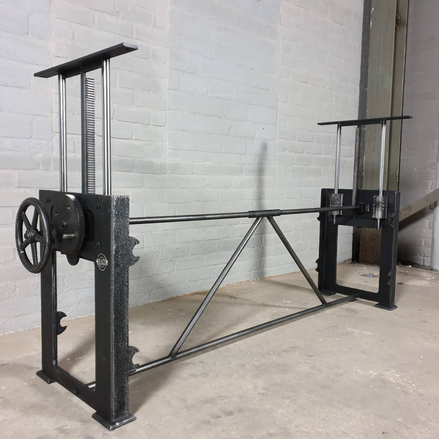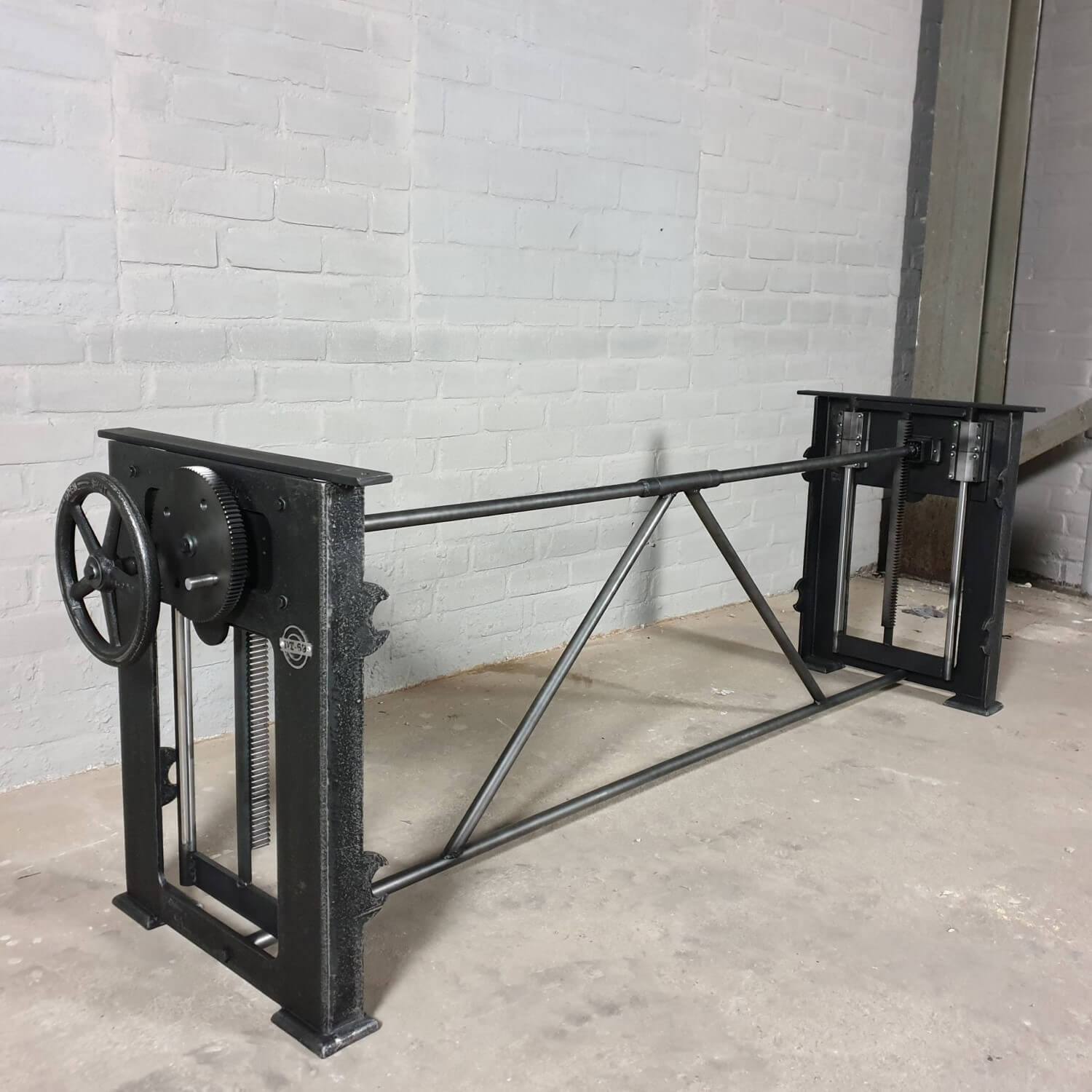 Dieser industrie Design Tischgestell hat einen in die Beine eingebauten Mechanismus zur Höhenverstellung. Mit diesem Mechanismus lässt sich eine Tischplatte von 71 cm bis 112 cm Höhe anheben und absenken. So kann ein Tisch mit diesem Gestell als Esstisch (niedrig) und als Stehtisch (hoch) verwendet werden. Denken Sie aber auch daran, den Küchentisch (niedrig) als Steh-Büro (hoch) zu nutzen.