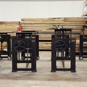 6 “höhenverstellbare” Tische für die Kochschule.