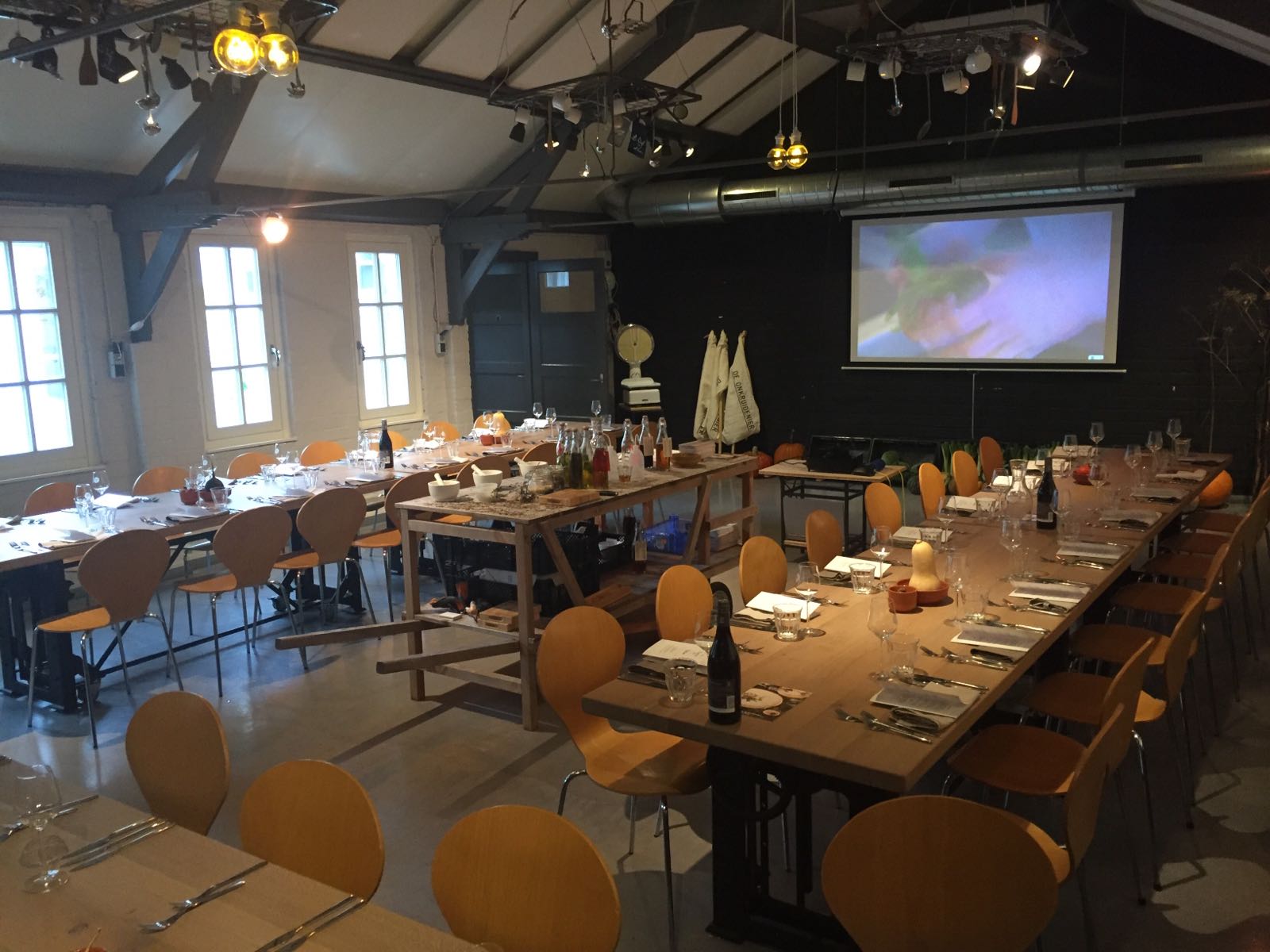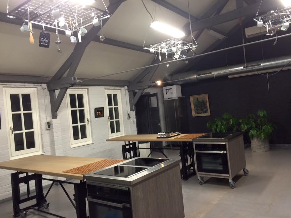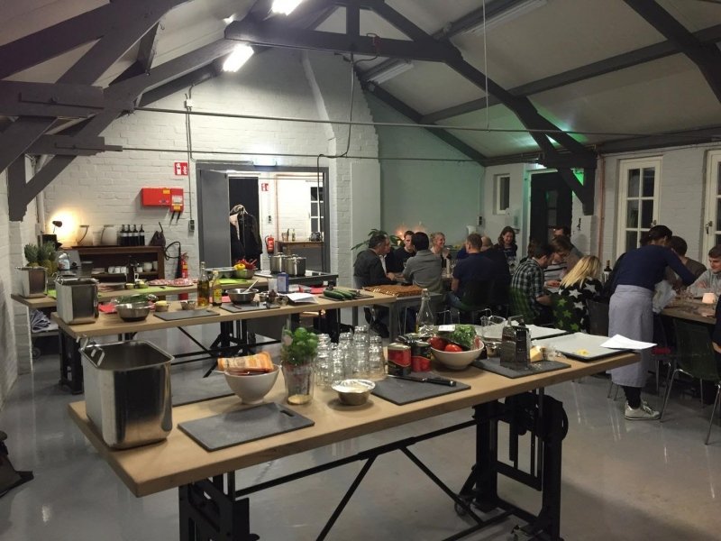 Die Tische sind für die Kochschule bestimmt. Sie sind in der Höhe verstellbar, so dass jede Zielgruppe (Kinder, Unternehmen und Einzelpersonen) an ihnen arbeiten und essen kann.