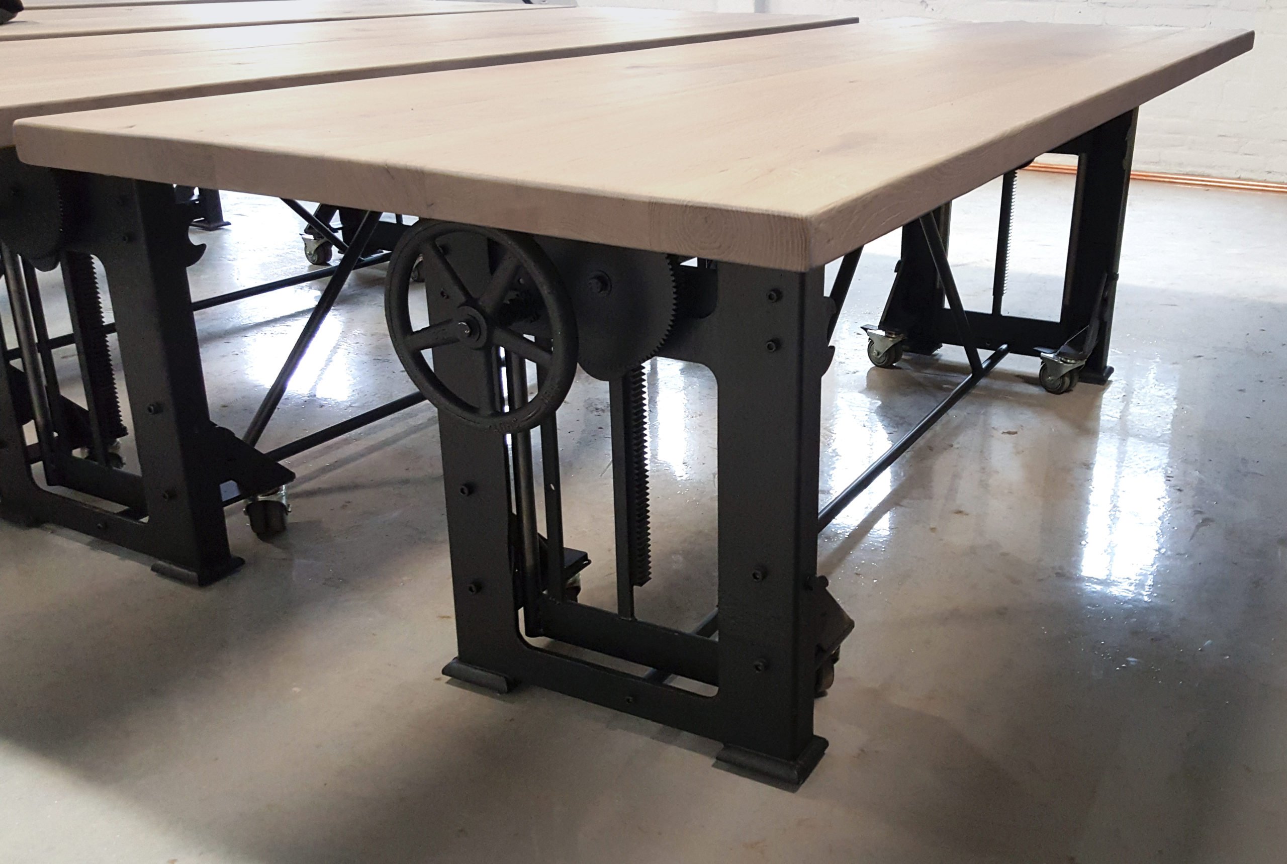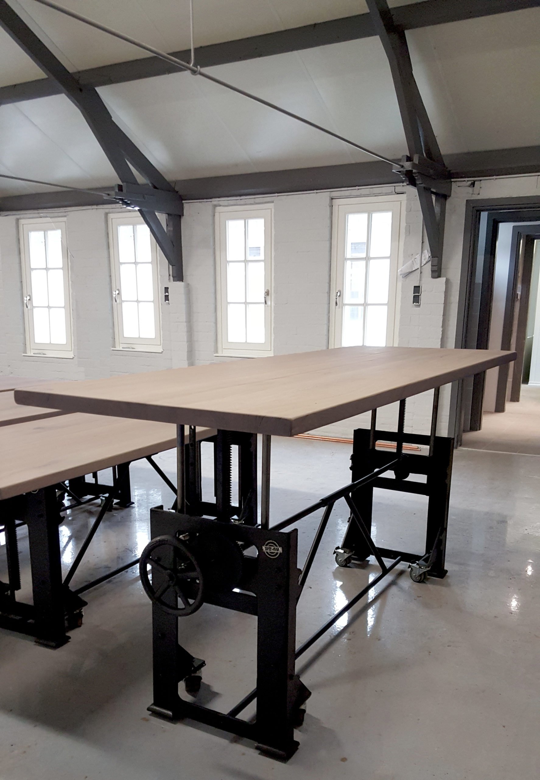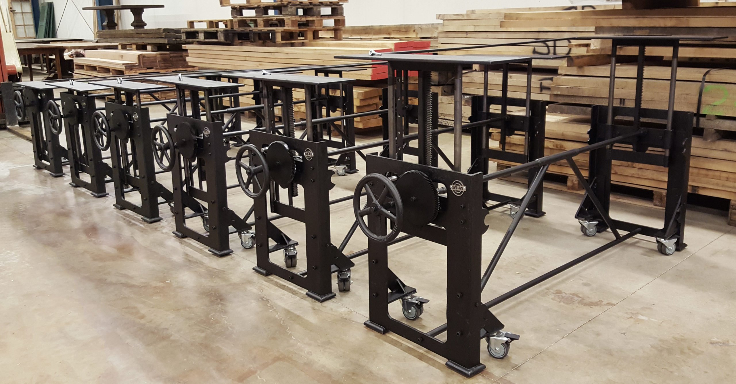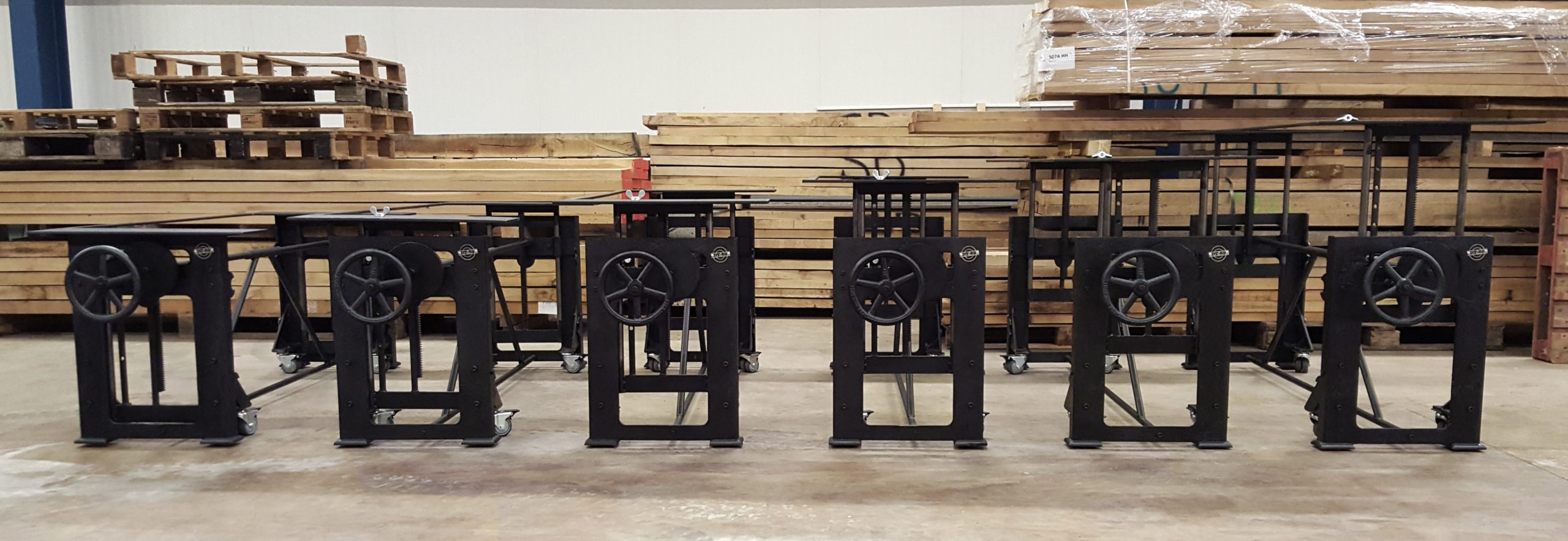 6 “höhenverstellbare” Tische für die Kochschule.